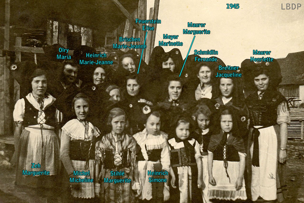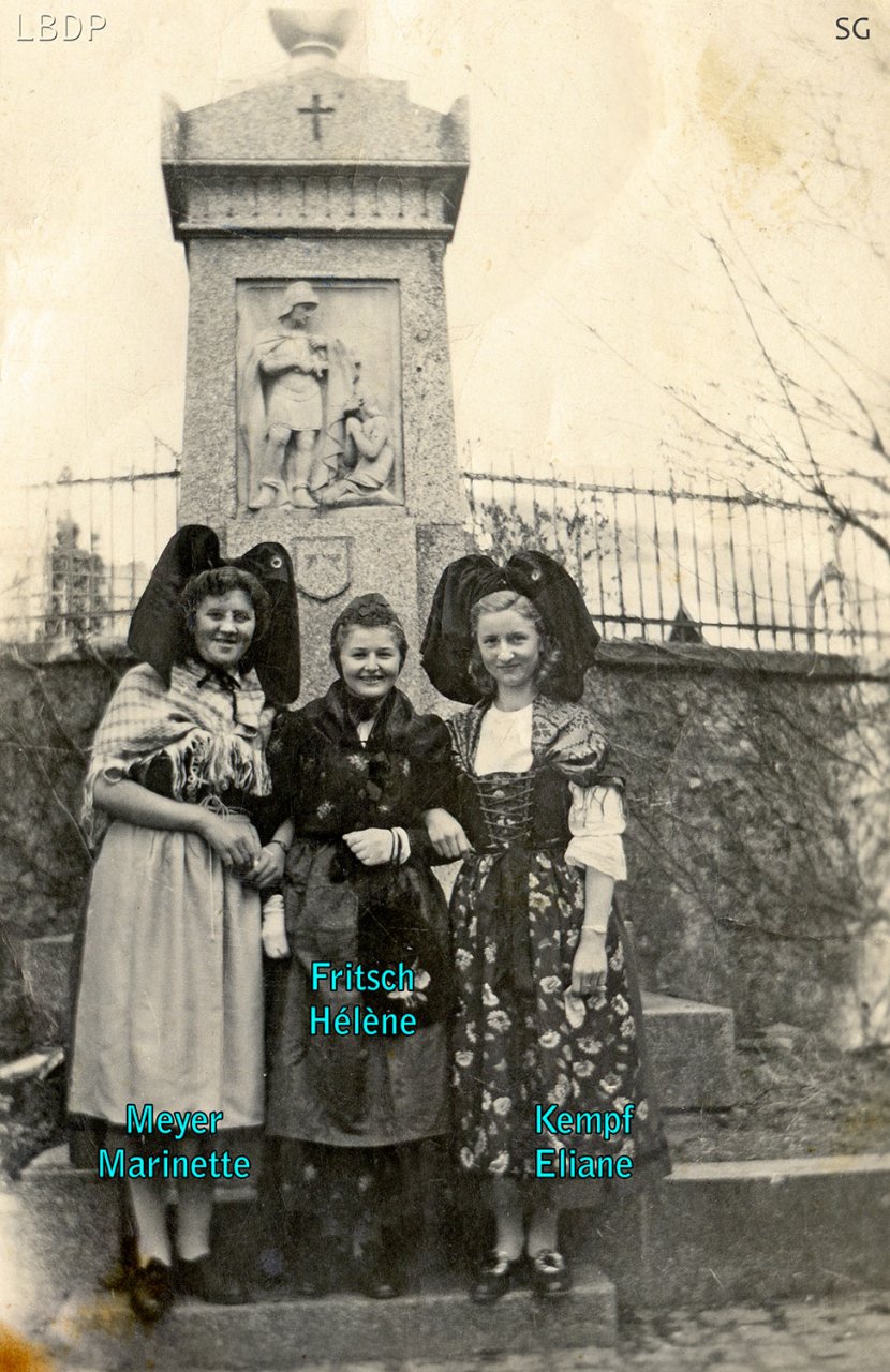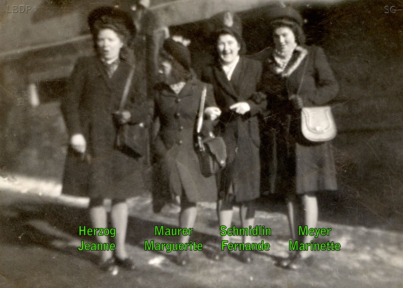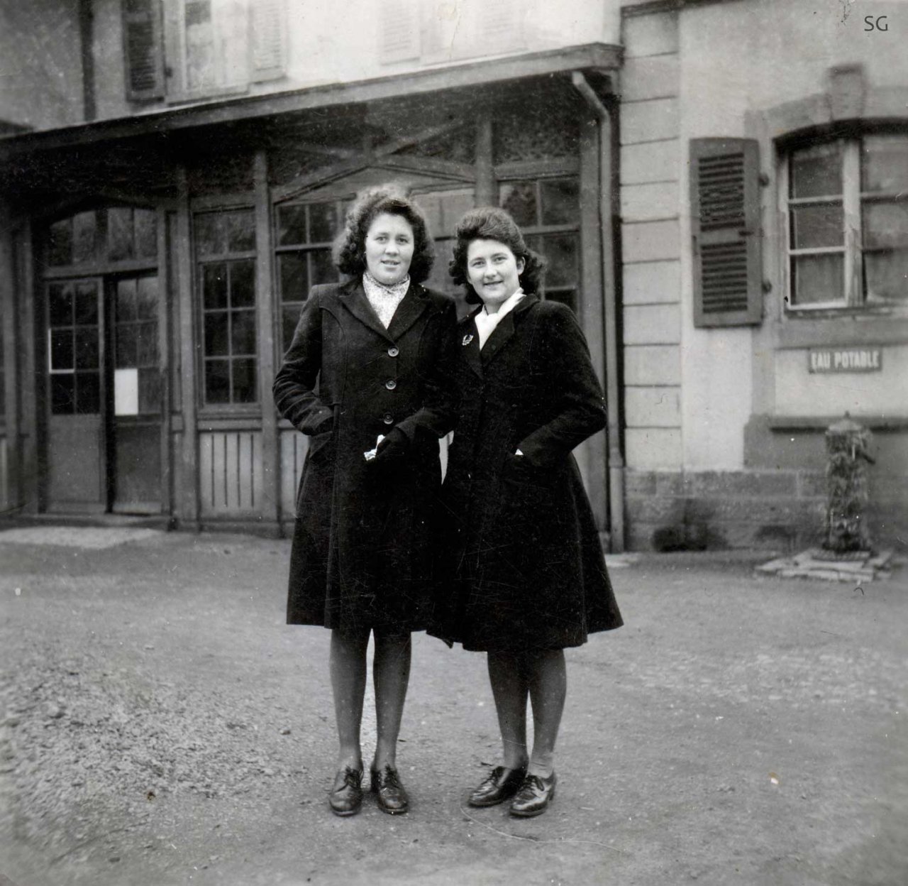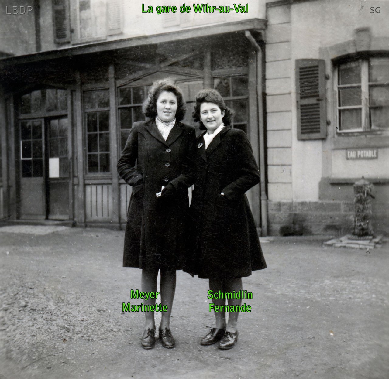 10 - Meyer Marinette et Schmidlin Fernande devant la gare de Wihr-au-Val le 10 janvier 1944. Le père de Fernande était le chef de gare à Wihr.
