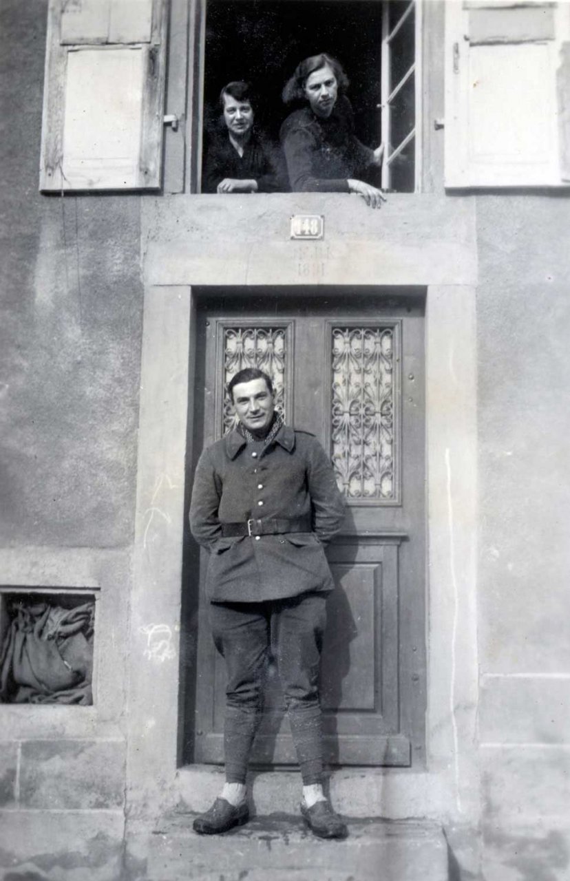 63 - A la fenêtre, à droite, Yvonne Heinrich en 1945