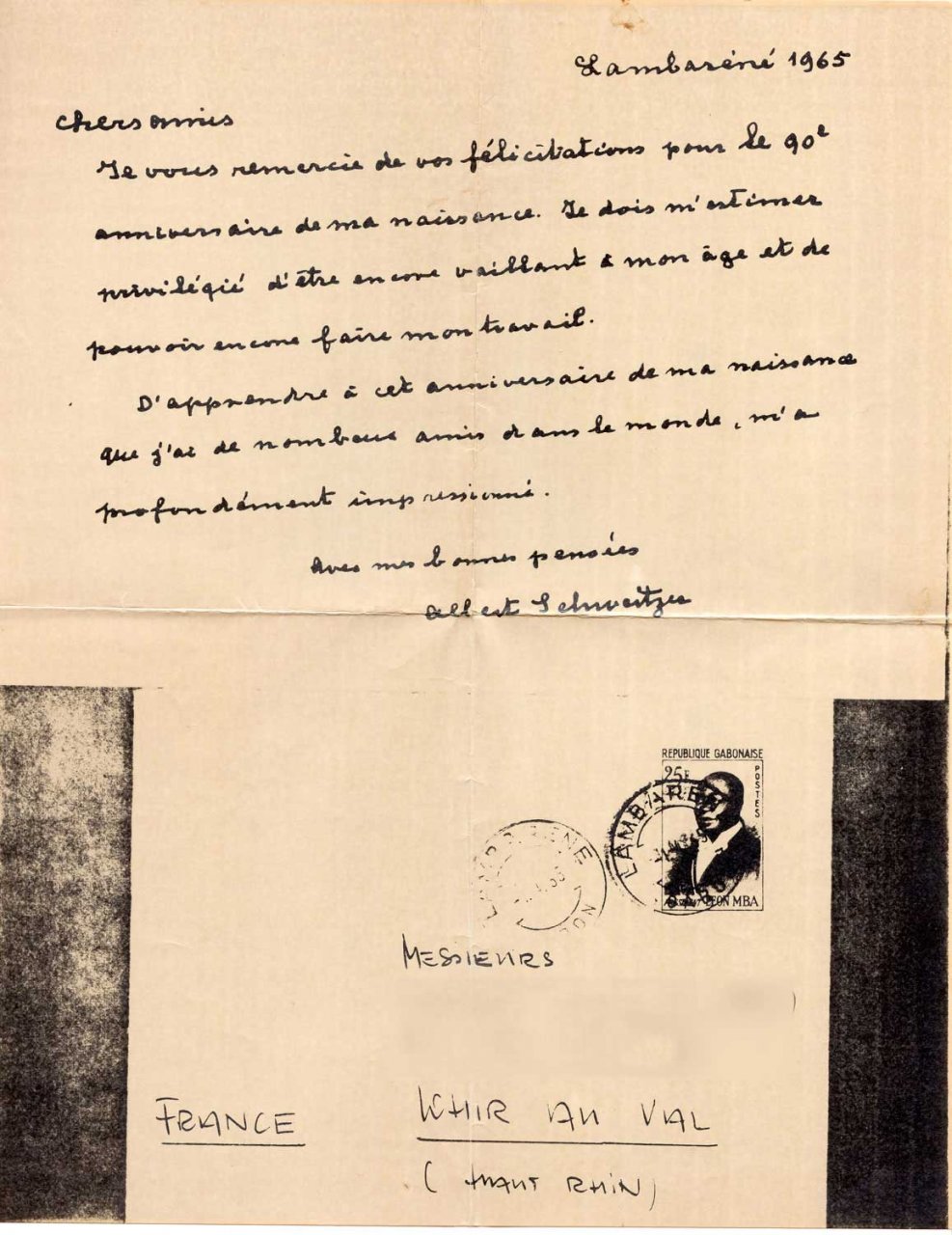 55 - Une lettre de Albert Schweitzer adressée à Heinrich Ernest