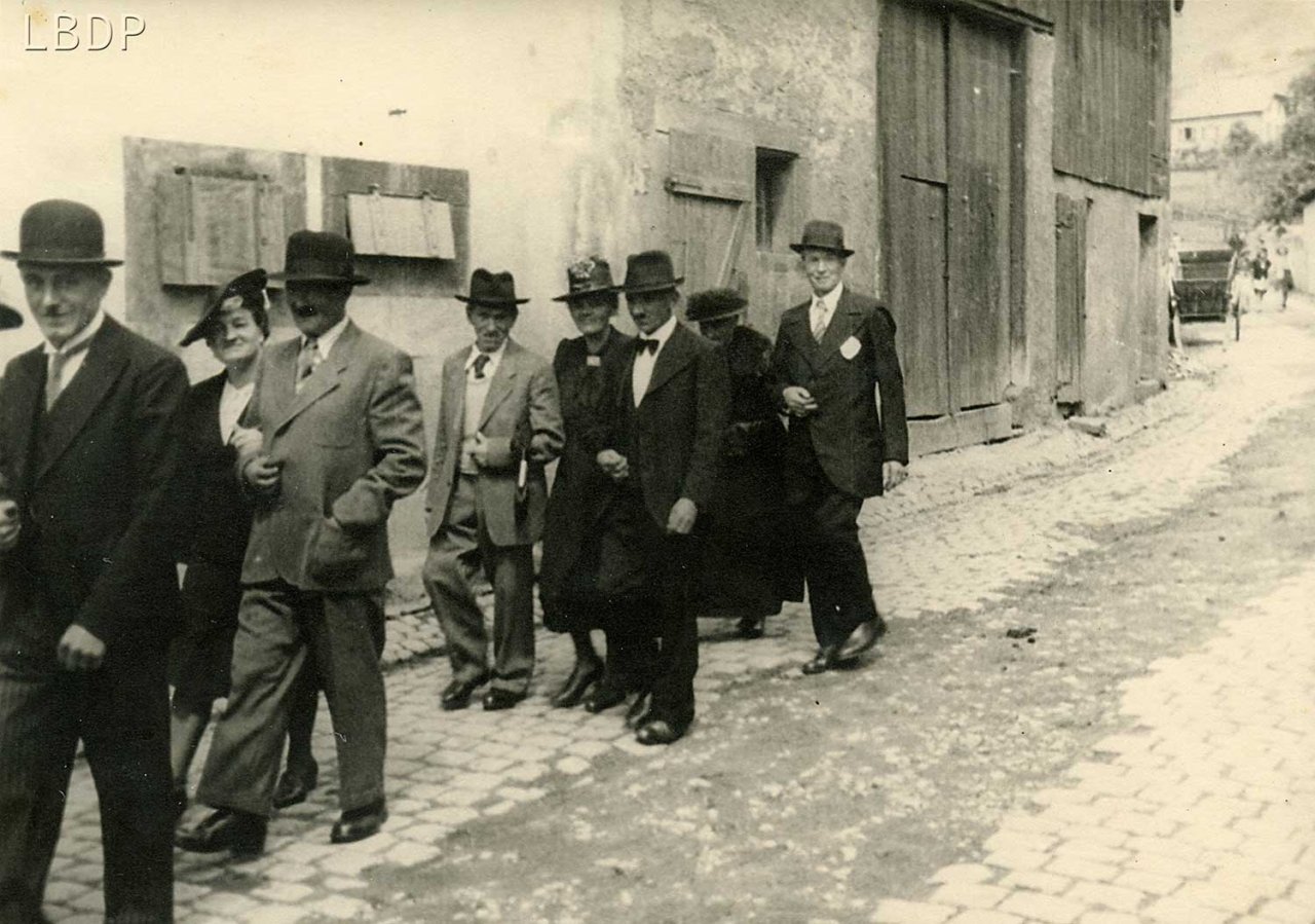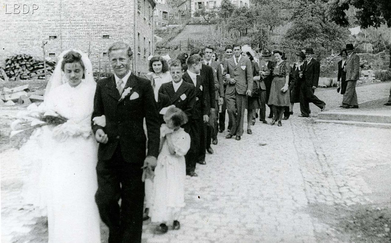40 - Le mariage de Adèle et Joseph le 18 mai 1946 ; le cortège défile dans l'actuelle rue de l'église