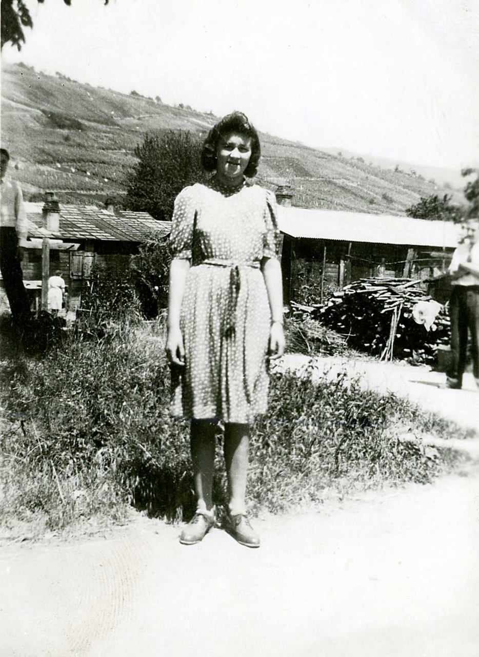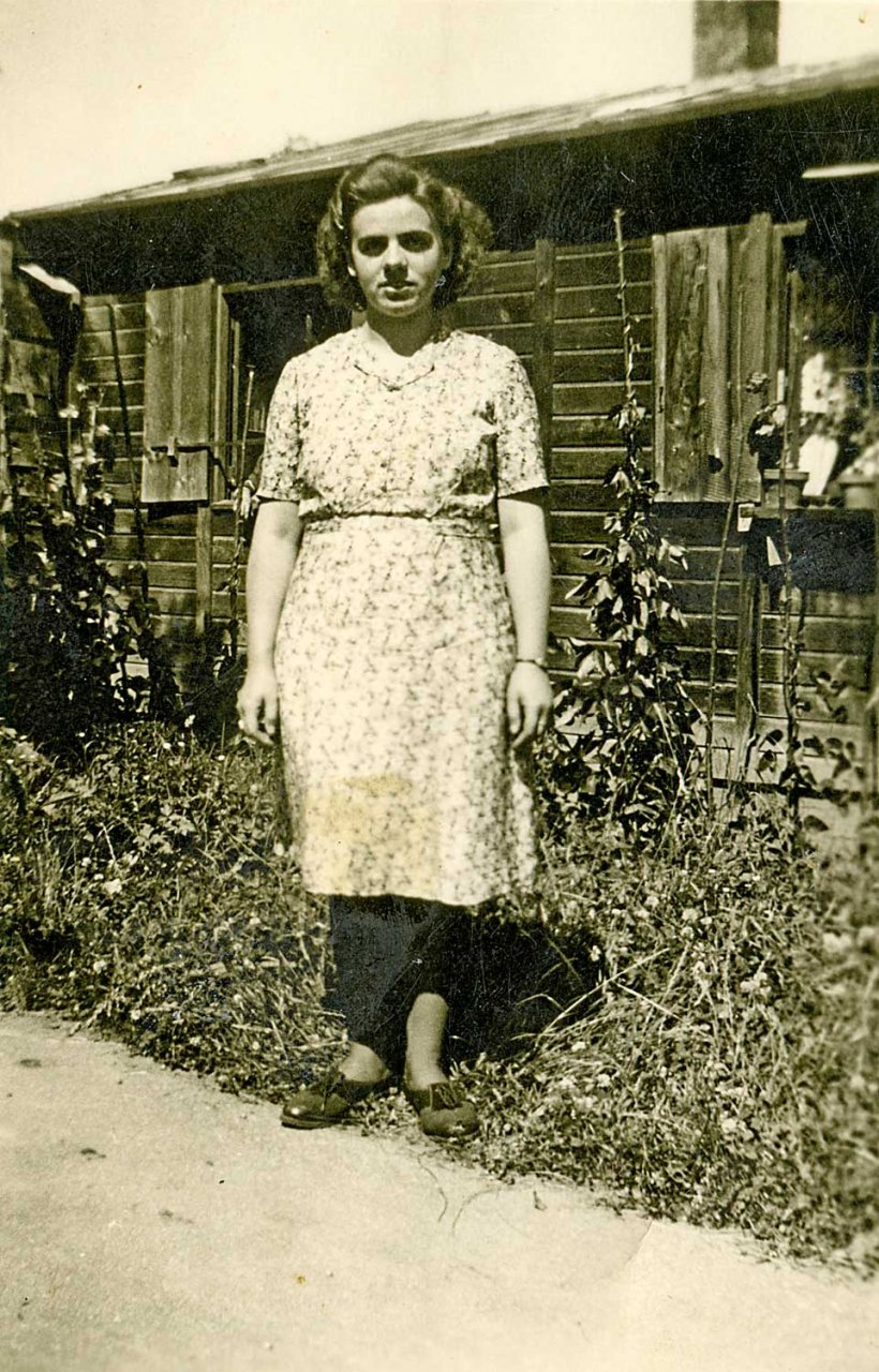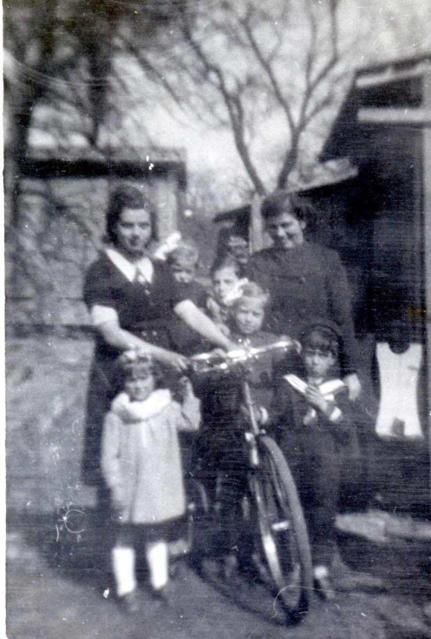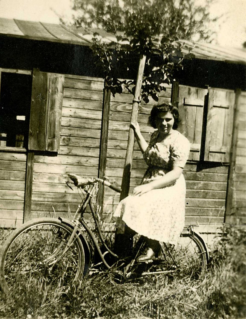 079 - Adèle avec son nouveau vélo devant la baraque N°26 dans le quartier Holtzwihr