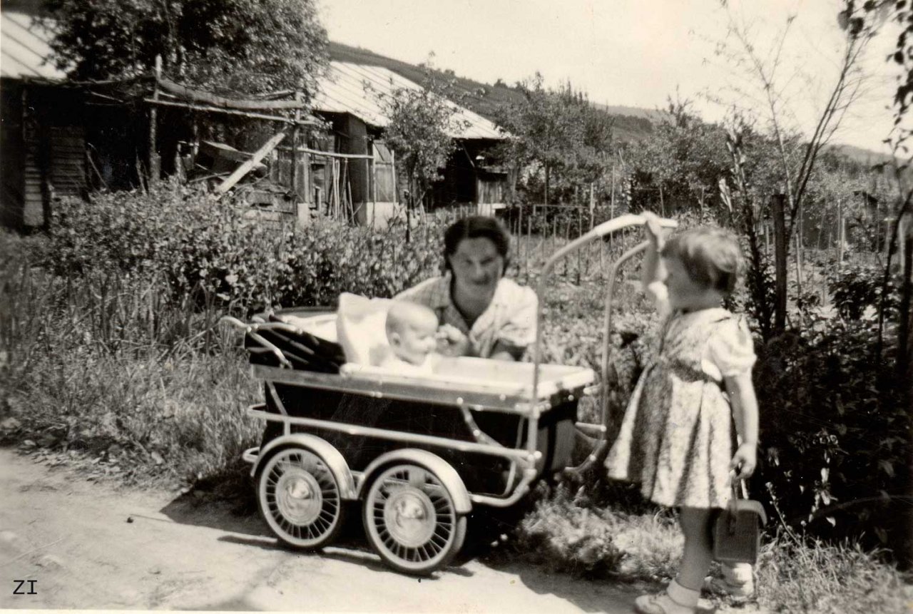 29 - Zimmermann Marie ; dans le landau sa fille Marie-Odile ; et Zimmermann Irène ; 1952