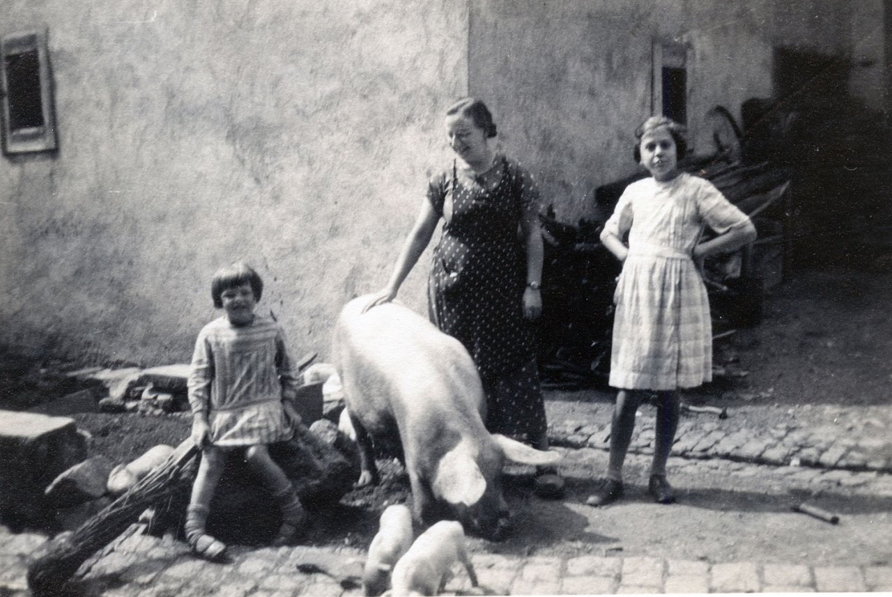 15 - Kuratlé Robert et sa fille Marie-Claire gardent les cochons