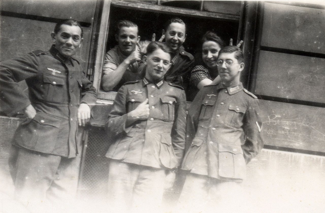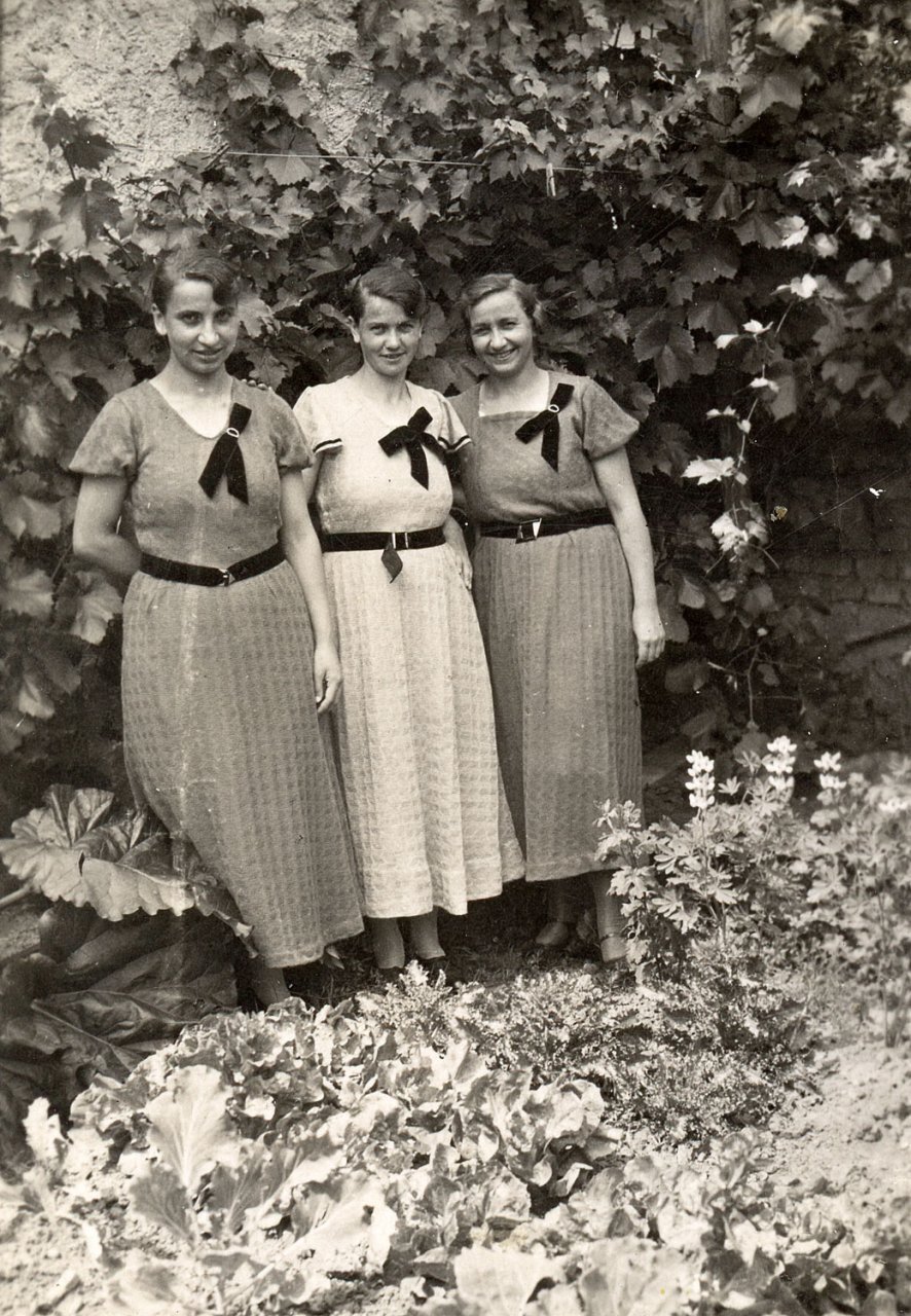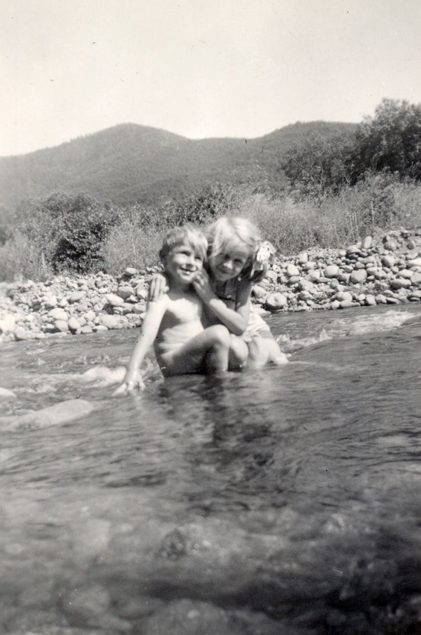 20 - Le bain de Marie-Claire et de Muré Marlyse entre deux rangées de baraques en été 1943, à "Holtzwihr"