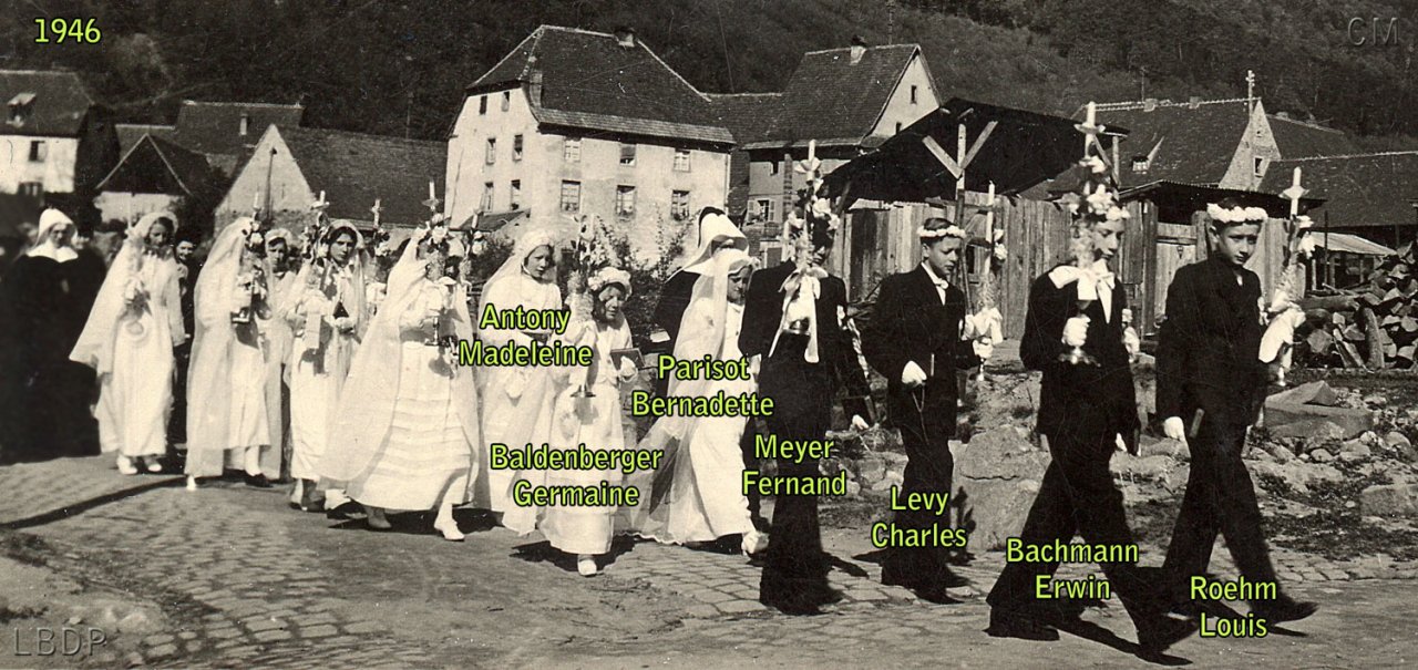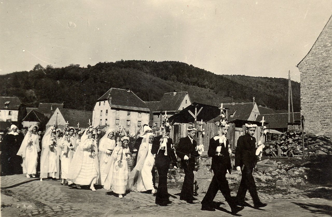 19 - Devant l'épicerie-boulangerie Stalter, qui était dans l'actuelle rue Sainte Barbe