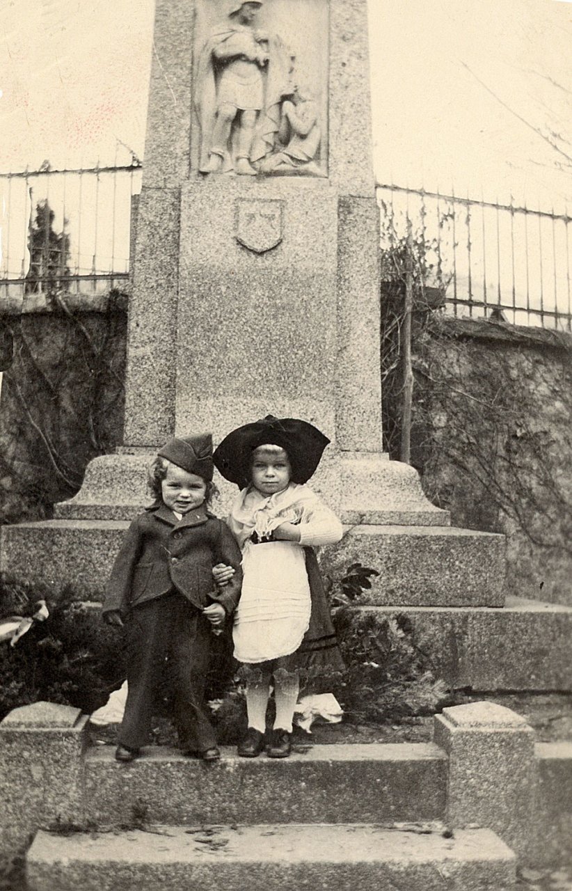 22 - Trau Henri et Muré Marlyse devant le monument aux morts, le 14 juillet 1945