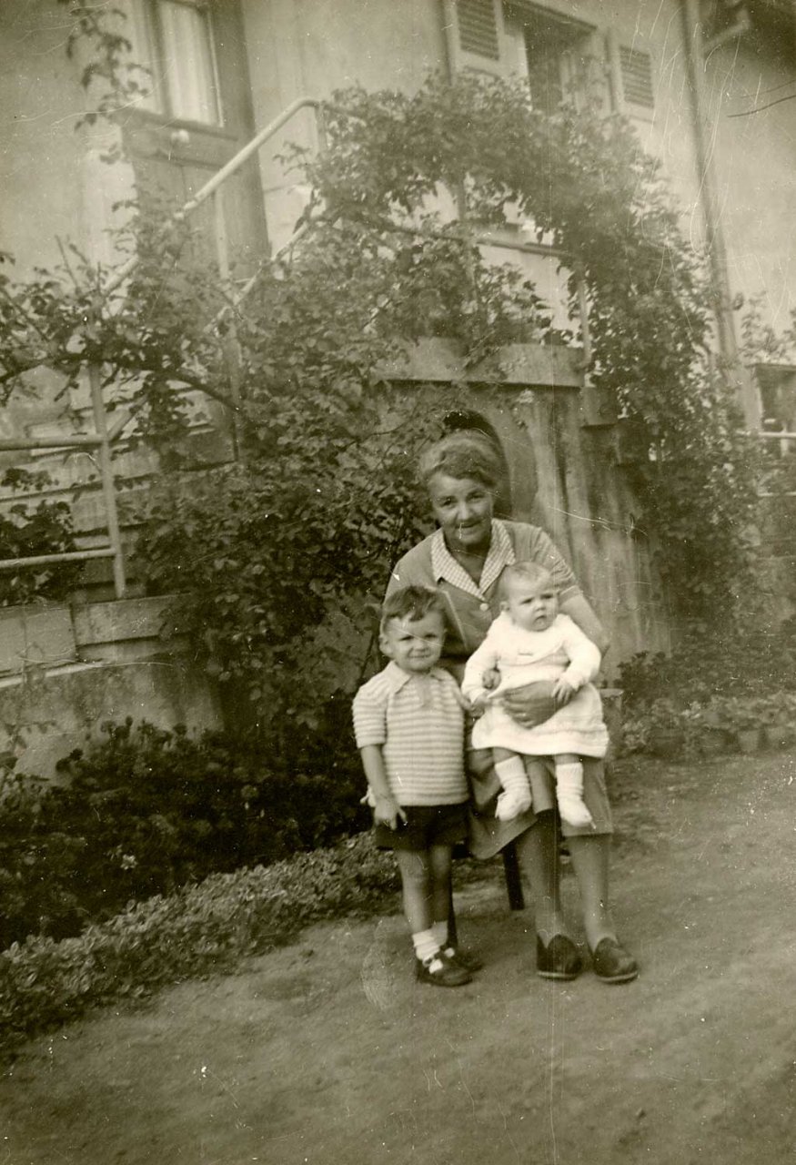 044 - Zeh Eugénie avec deux de ses petits-enfants, Gérard et Michel