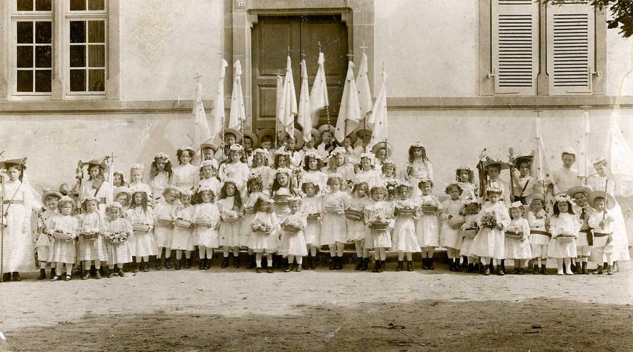 15 - La visite médicale ; les enfants sur l'escalier de l'ancienne mairie