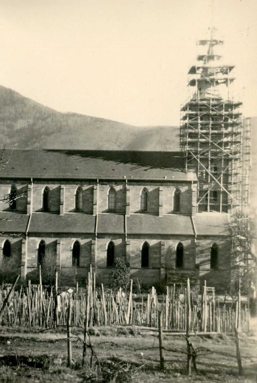 12 - La reconstruction du clocher de l'église de Wihr-au-Val en 1952