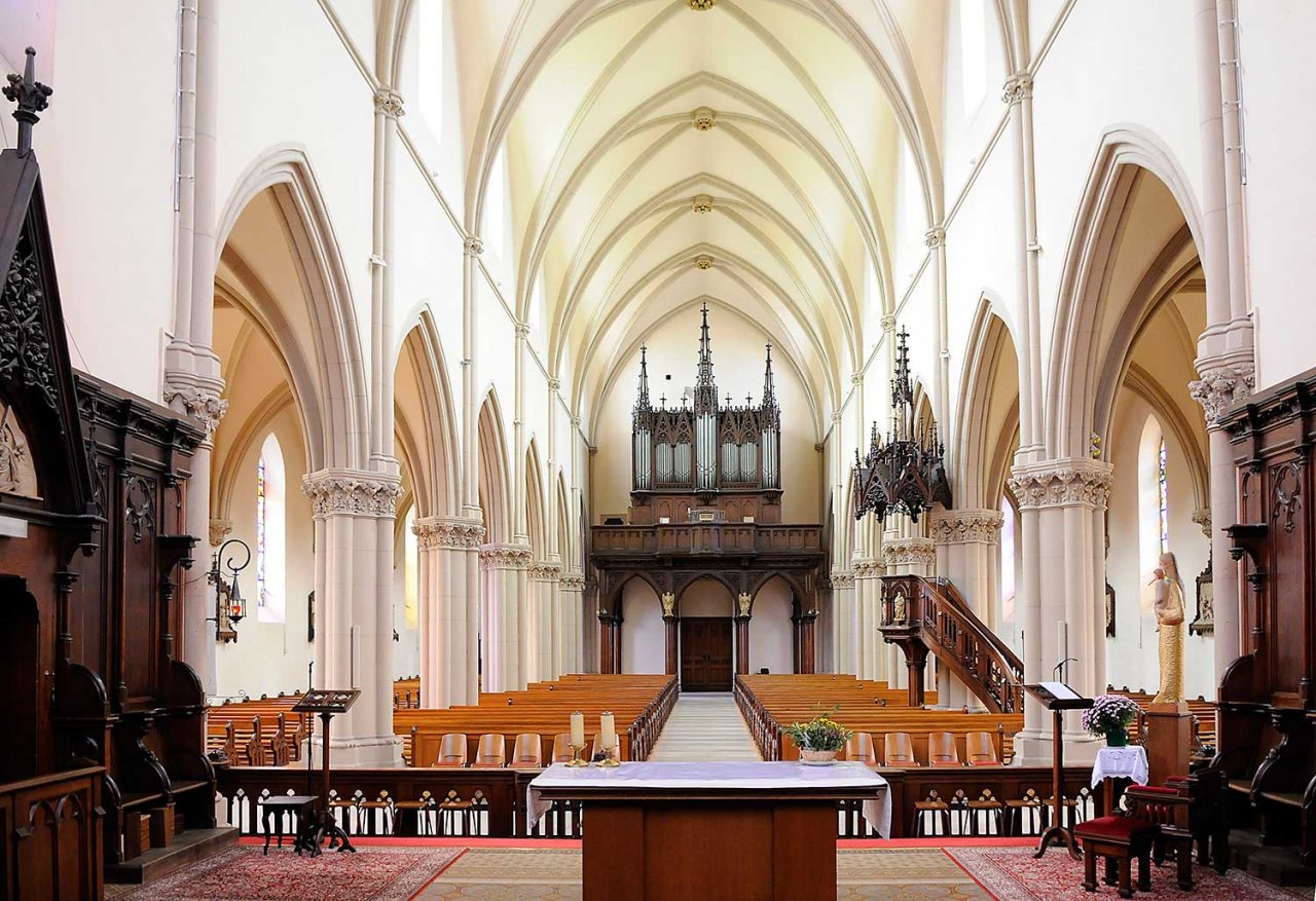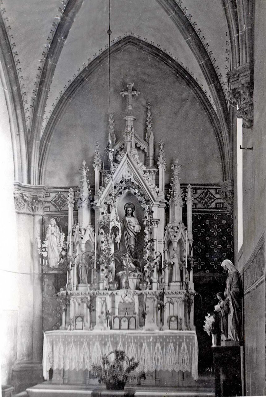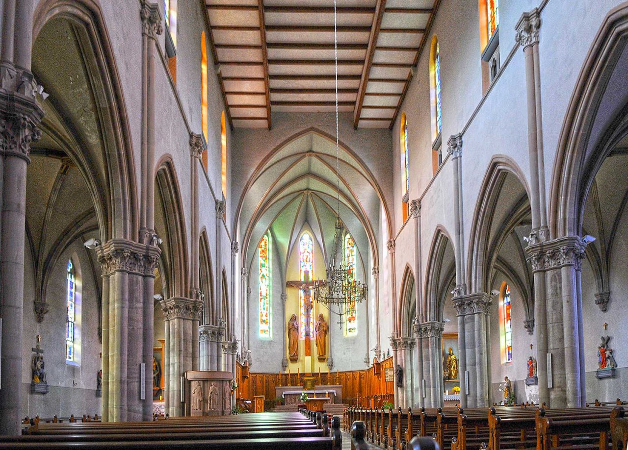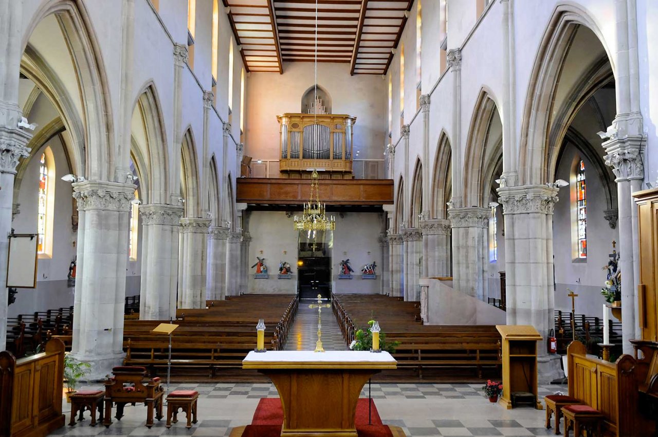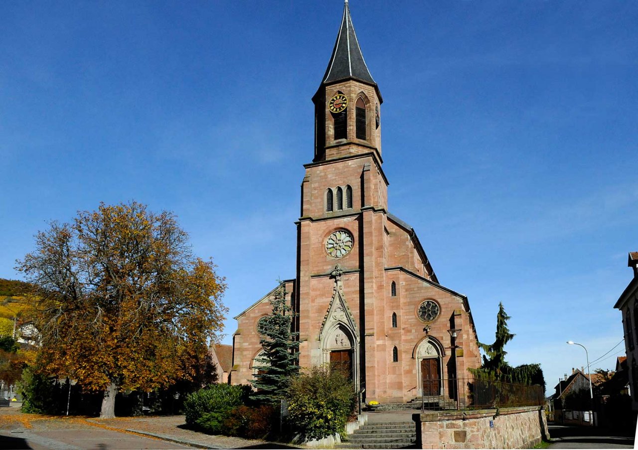 L’église Saint Martin est construite dans un style néo-gothique. Elle remplace l’ancienne église qui fut construite en 1481 et qui était située à l’emplacement du cimetière actuel près de la chapelle Saint Michel. Elle a été construite sur des plans de l’architecte colmarien Victor Heilmann. Celui-ci s’est inspiré (presque un copier-coller !) des plans de l’église Saint Augustin de Moosch, dans la vallée de Thann. (voir les deux dernières photos). La pose de la première pierre a eu lieu le 11 juillet 1869. Les travaux ont été achevés en 1873 et l’église a été consacrée le 23 septembre 1873.