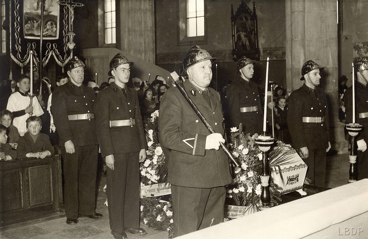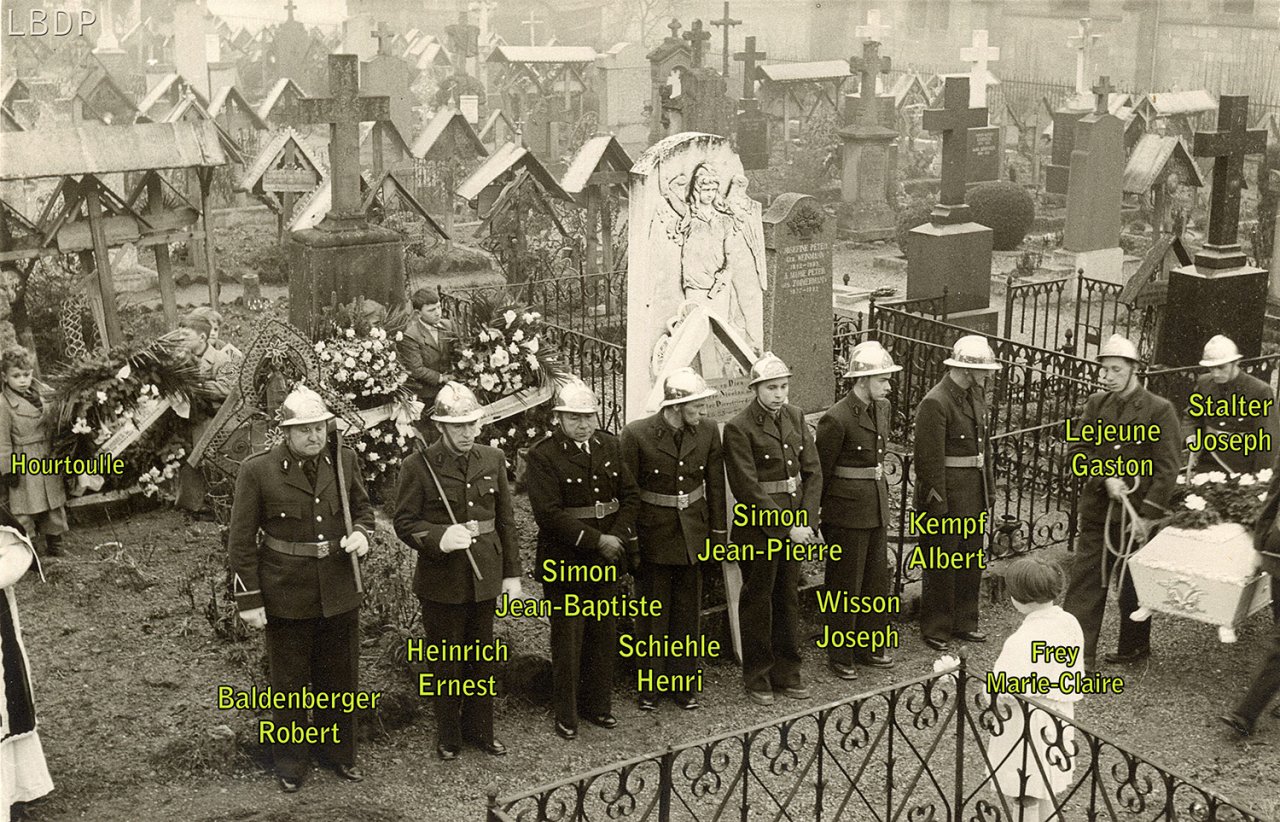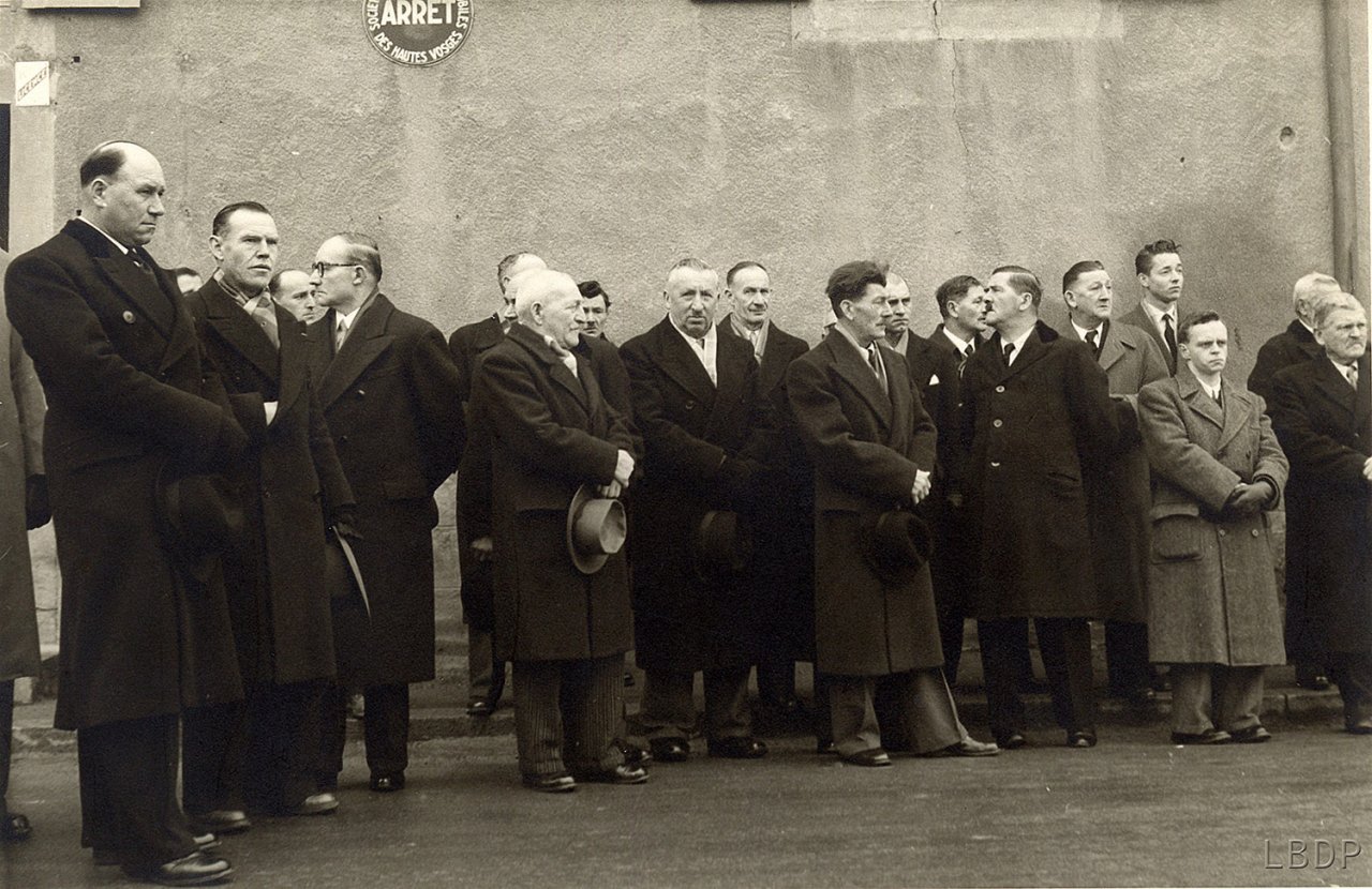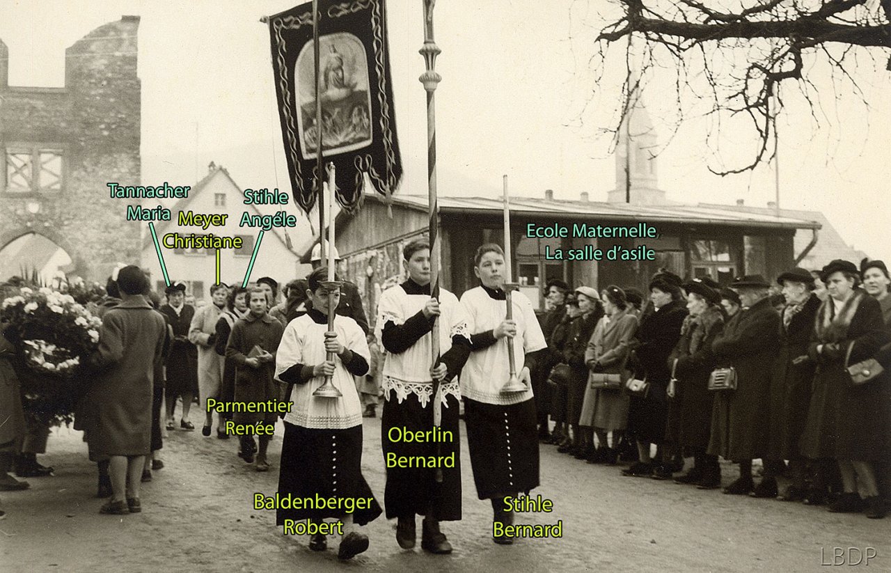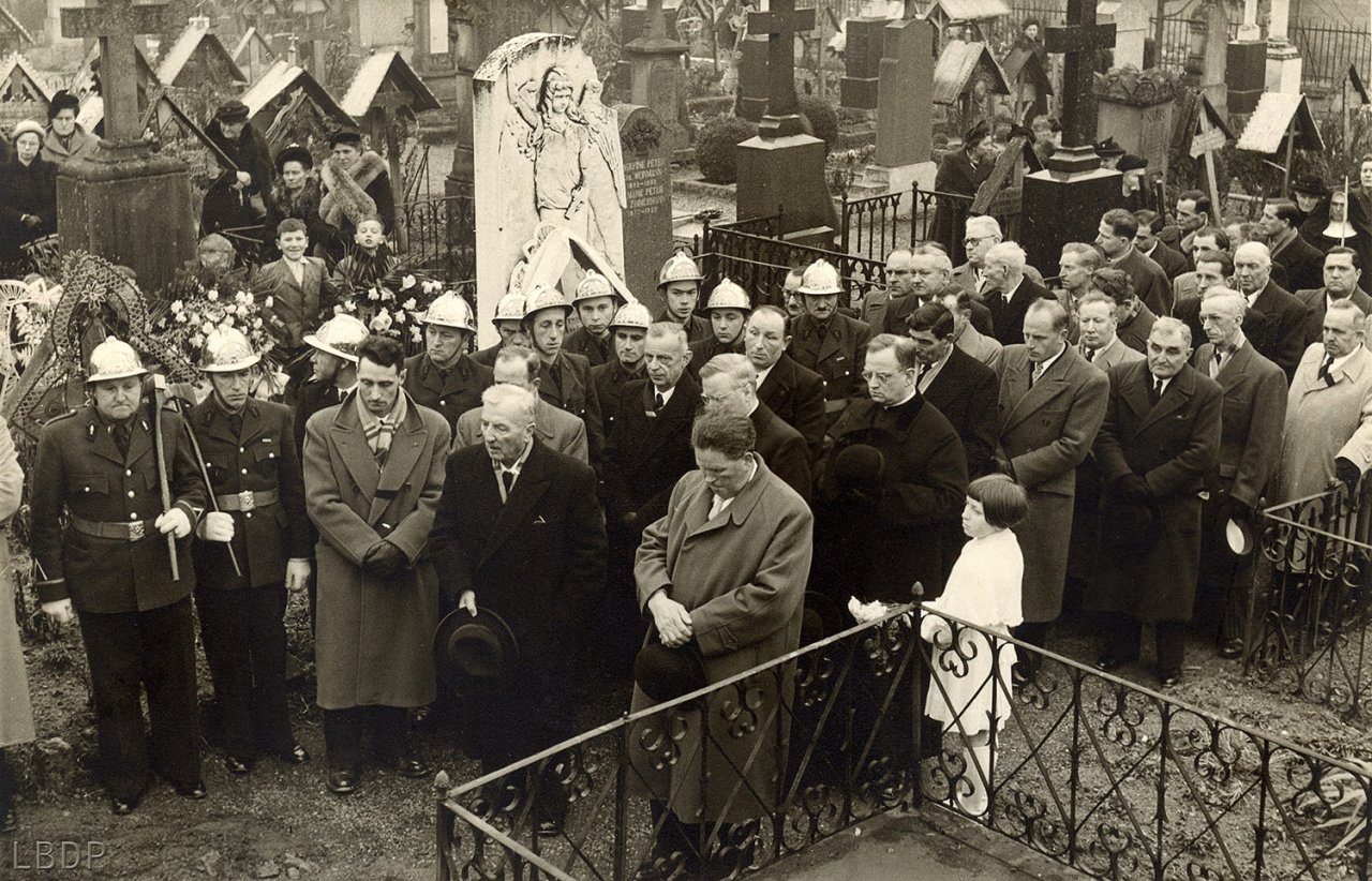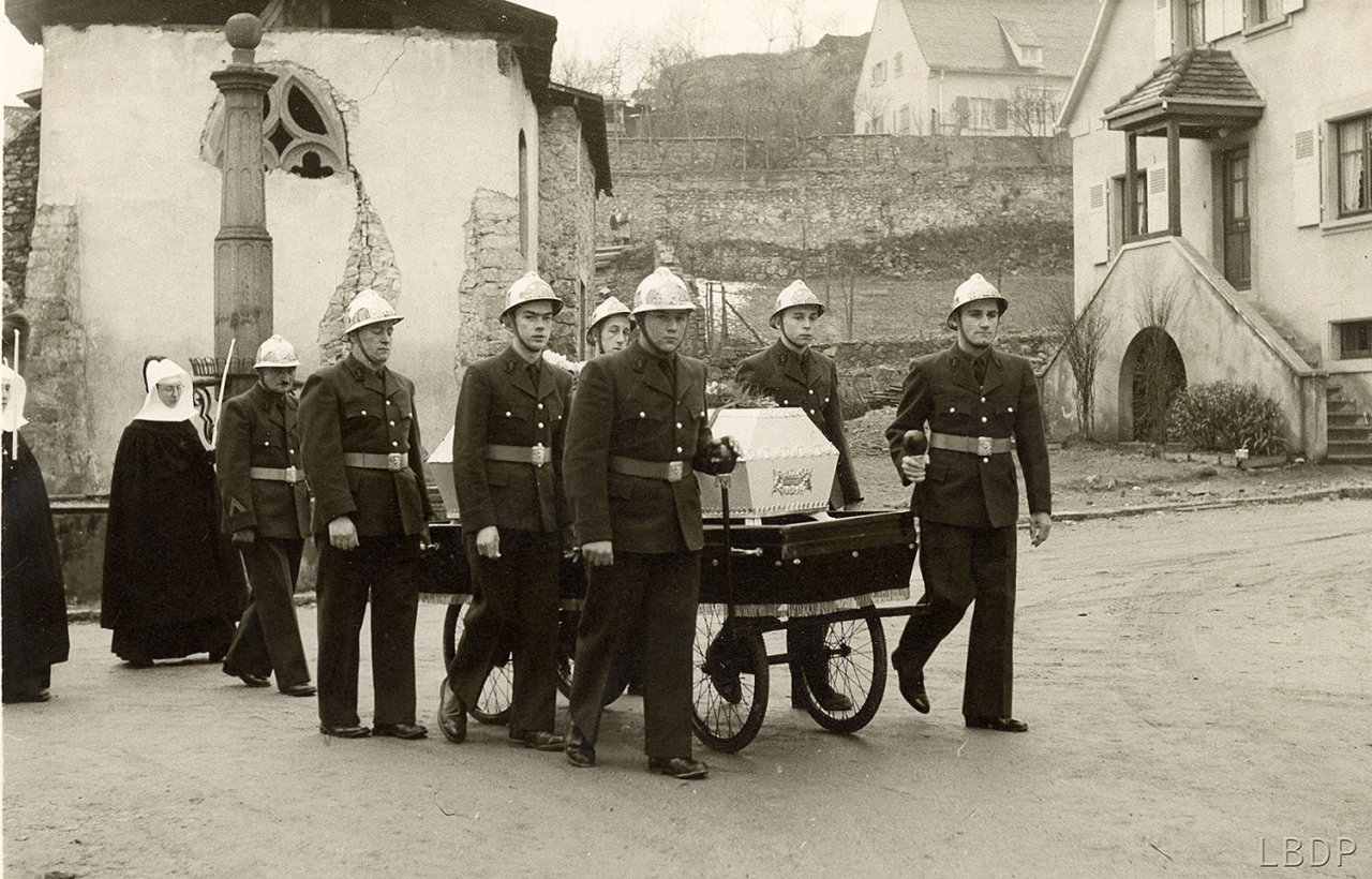 Le cercueil devant le foyer Saint Sébastien. - En 1955 c'était l'école des filles.
