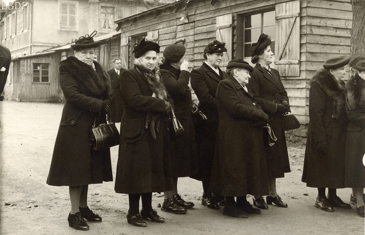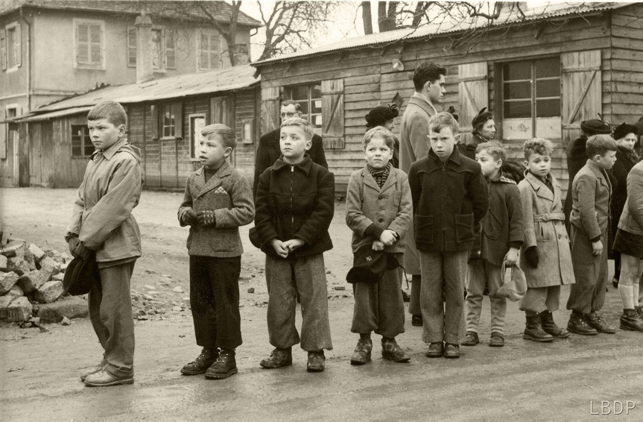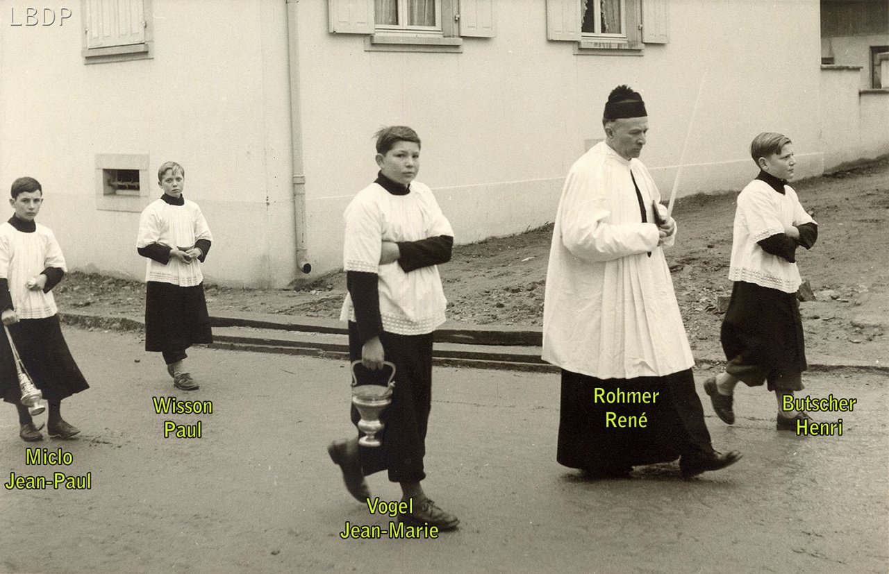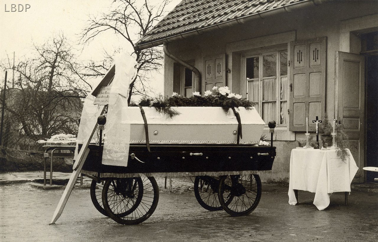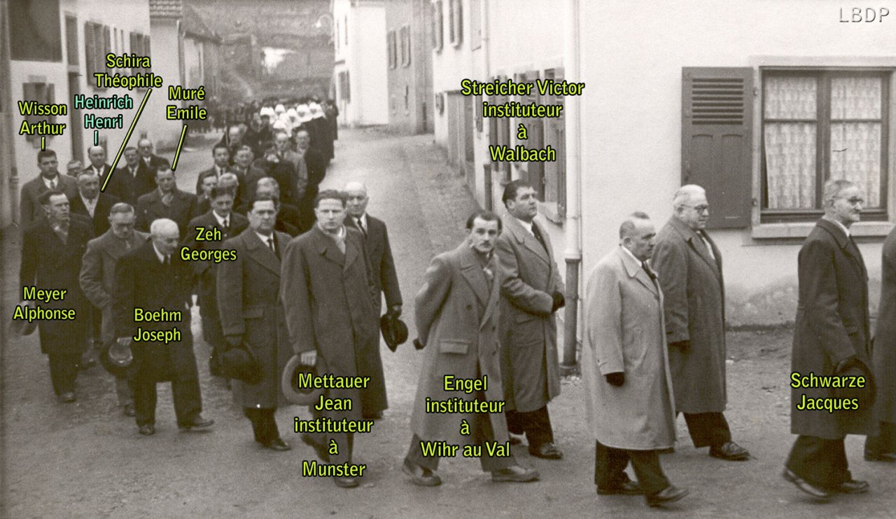 Le cercueil devant le foyer Saint Sébastien. - En 1955 c'était l'école des filles.