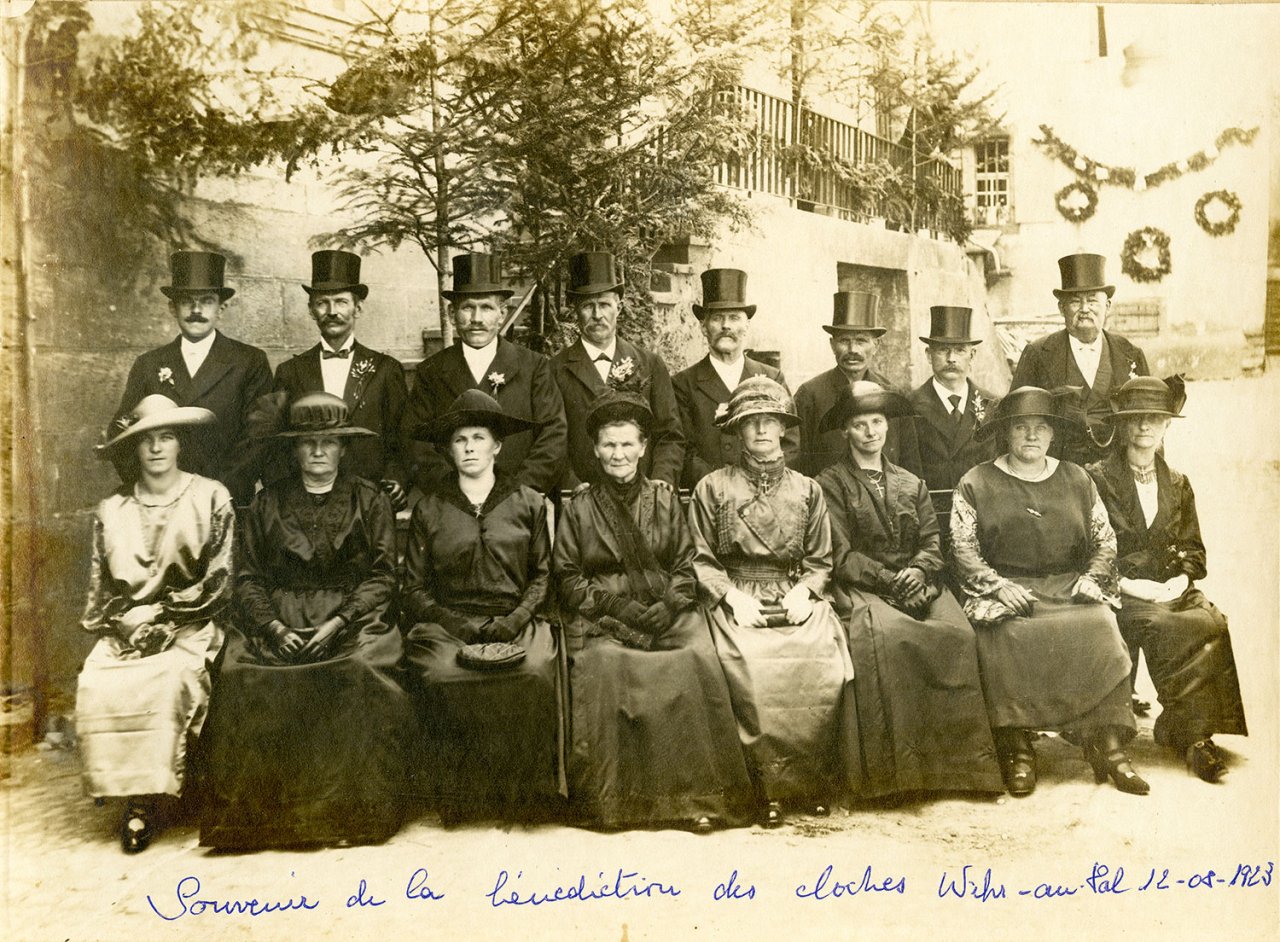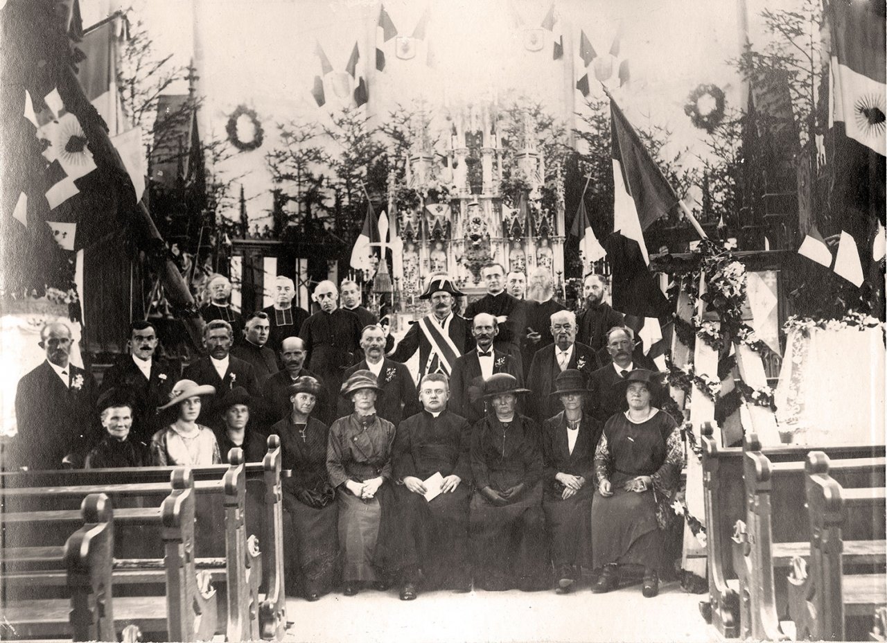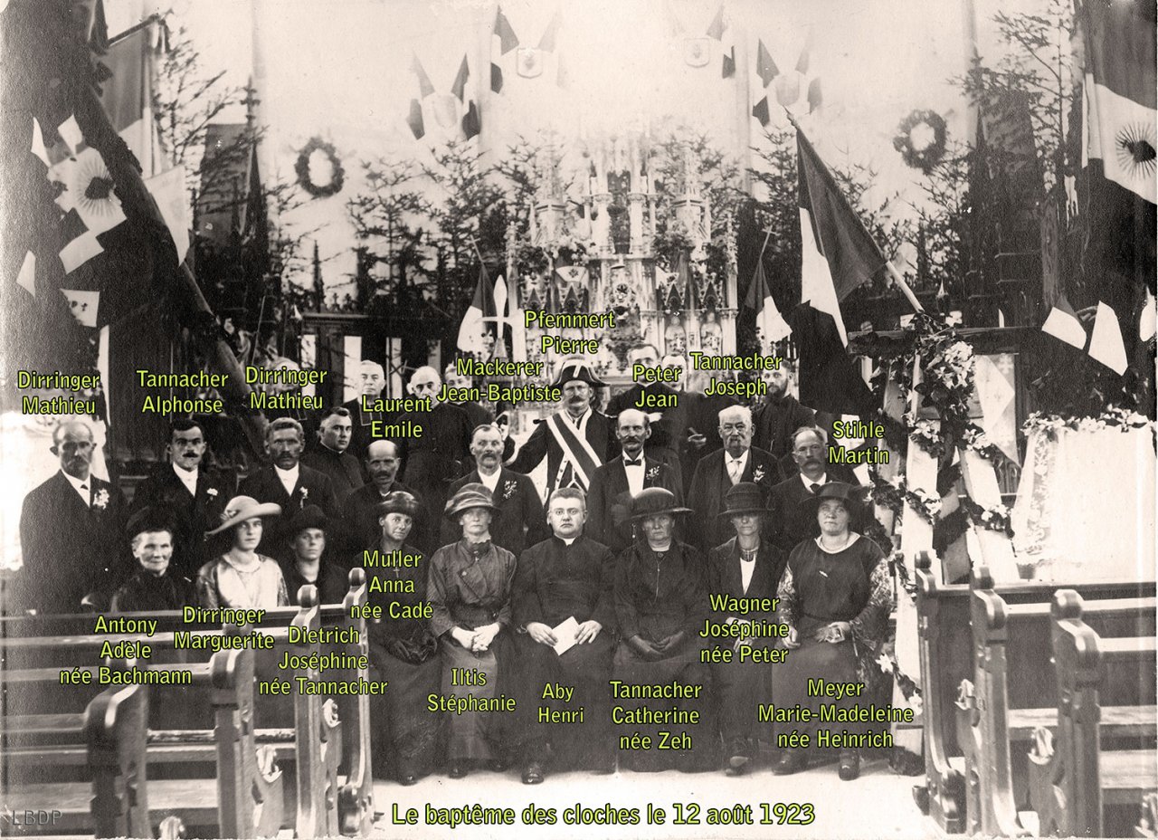 byBénédiction des cloches le 12 aout 1923 : les parrains et marraines des cloches et le conseil municipal dans l'église