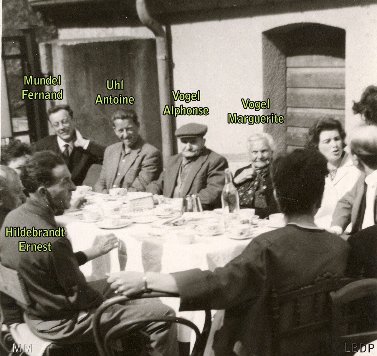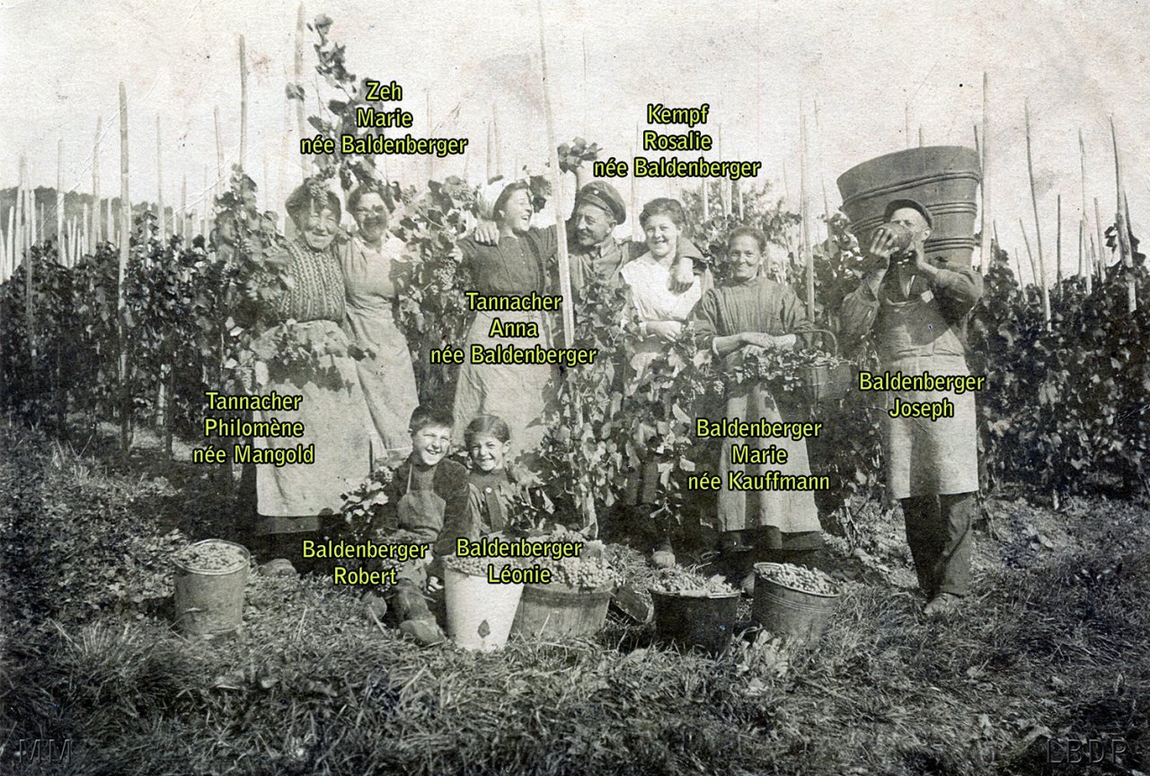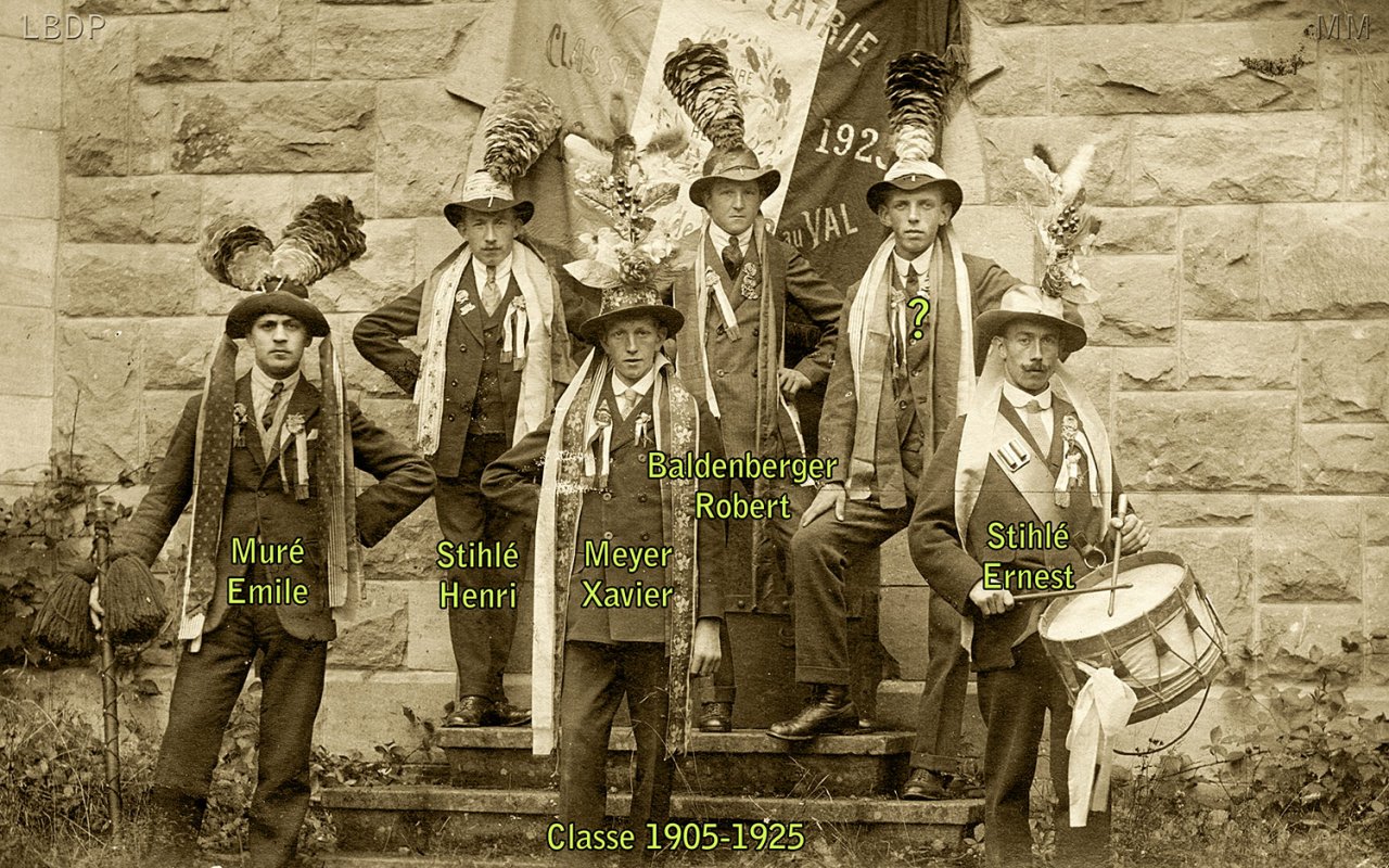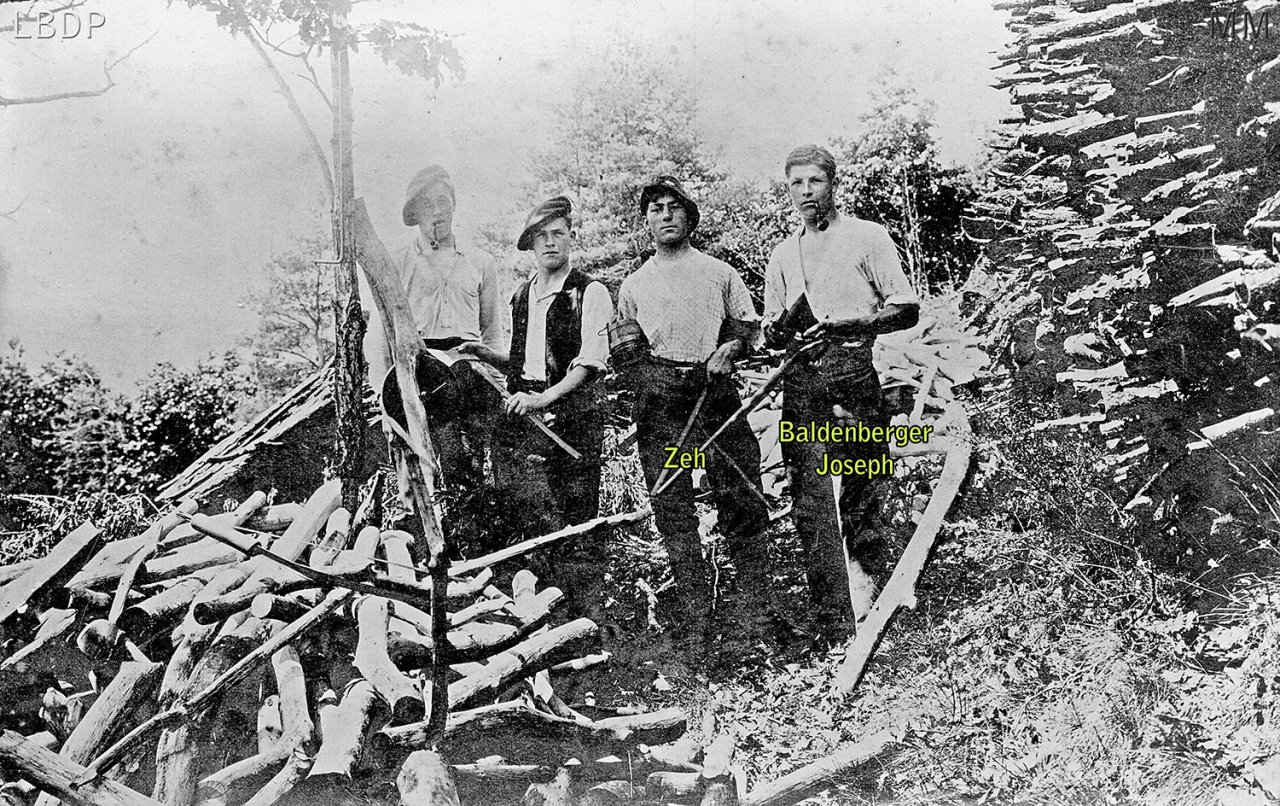 91 - Les maçons au travail : à gauche, en bas et adossé contre la poutre, Baldenberger Joseph