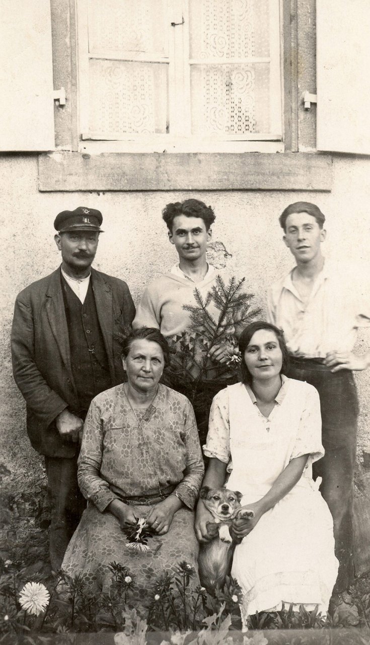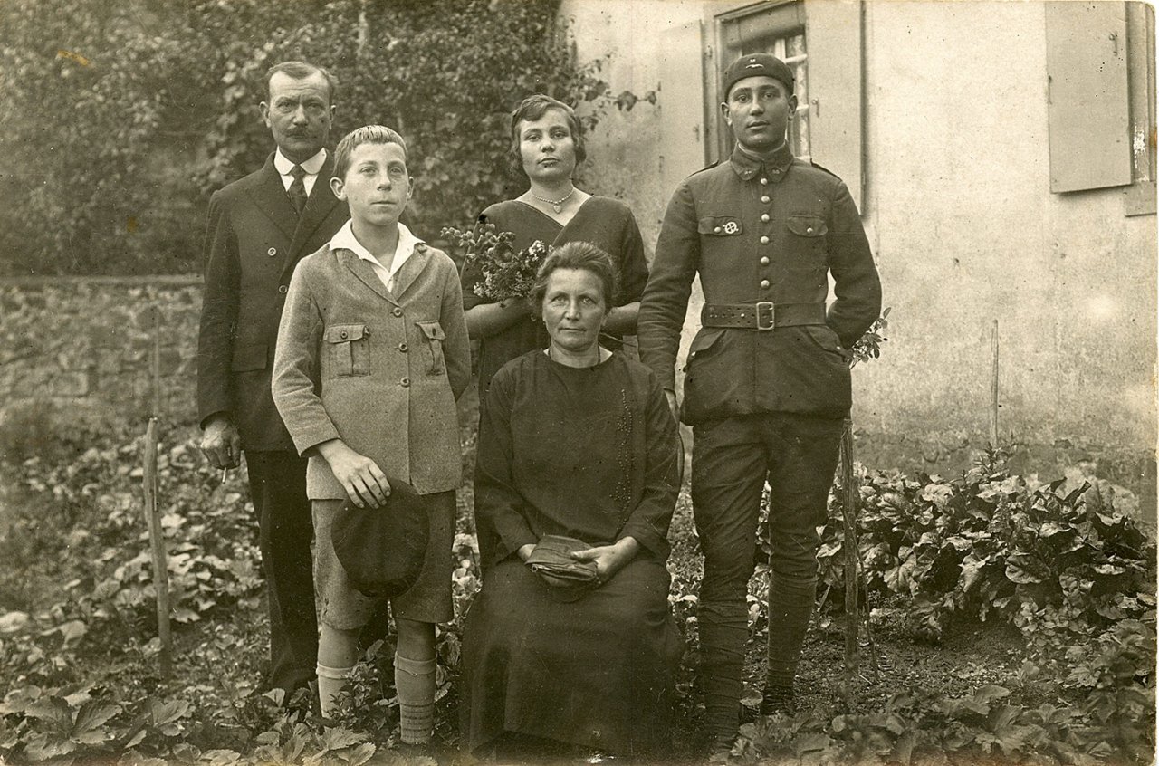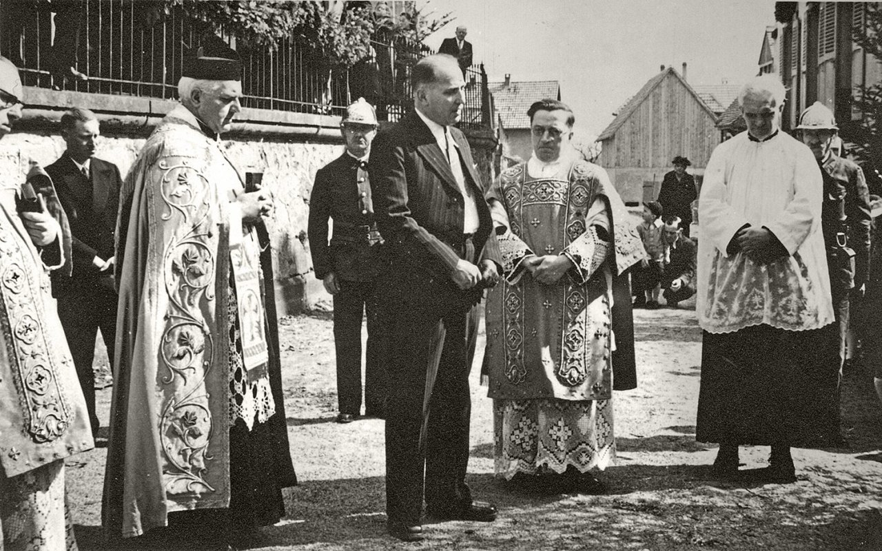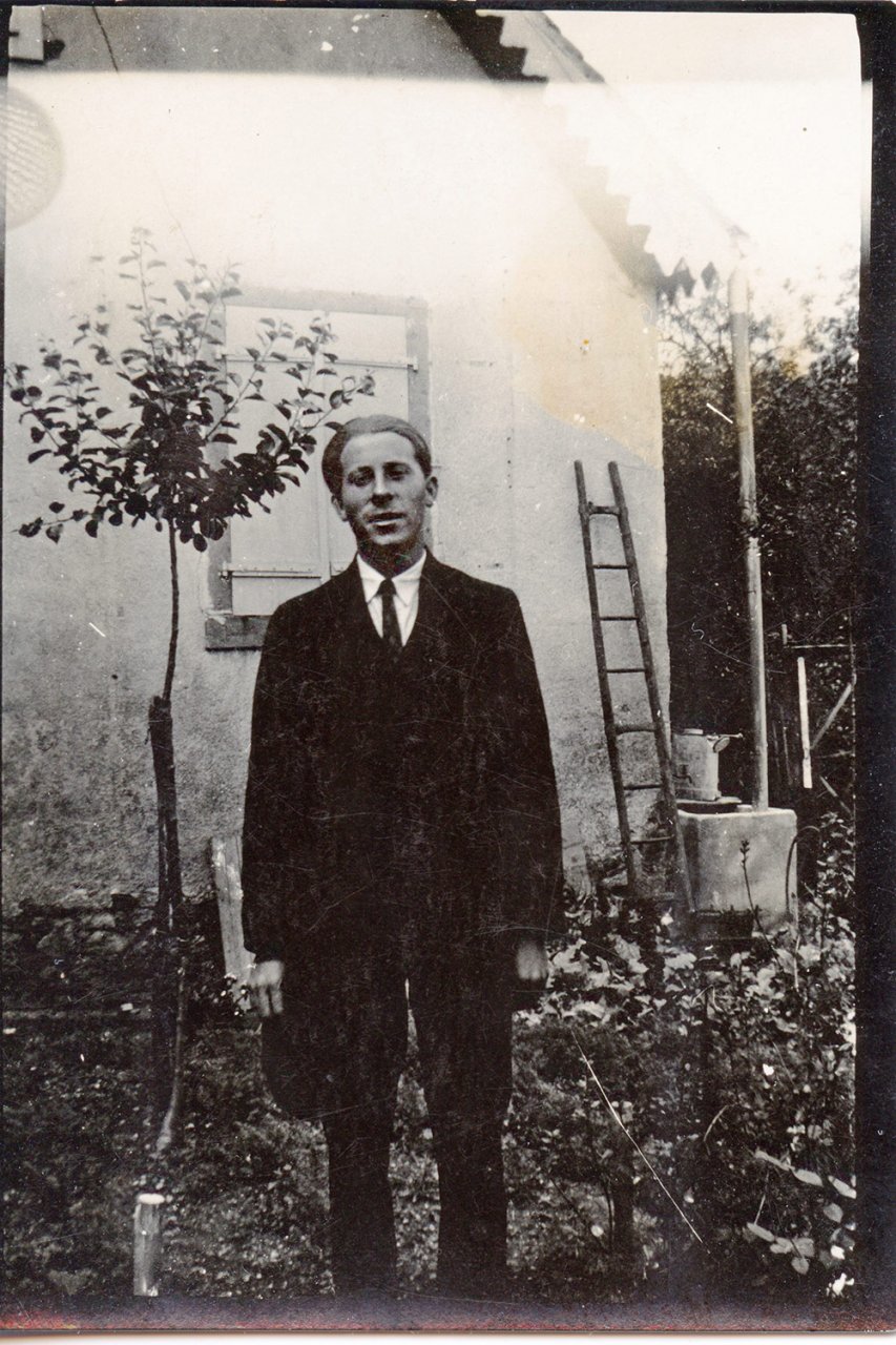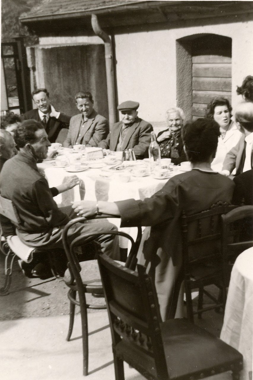 91 - Les maçons au travail : à gauche, en bas et adossé contre la poutre, Baldenberger Joseph
