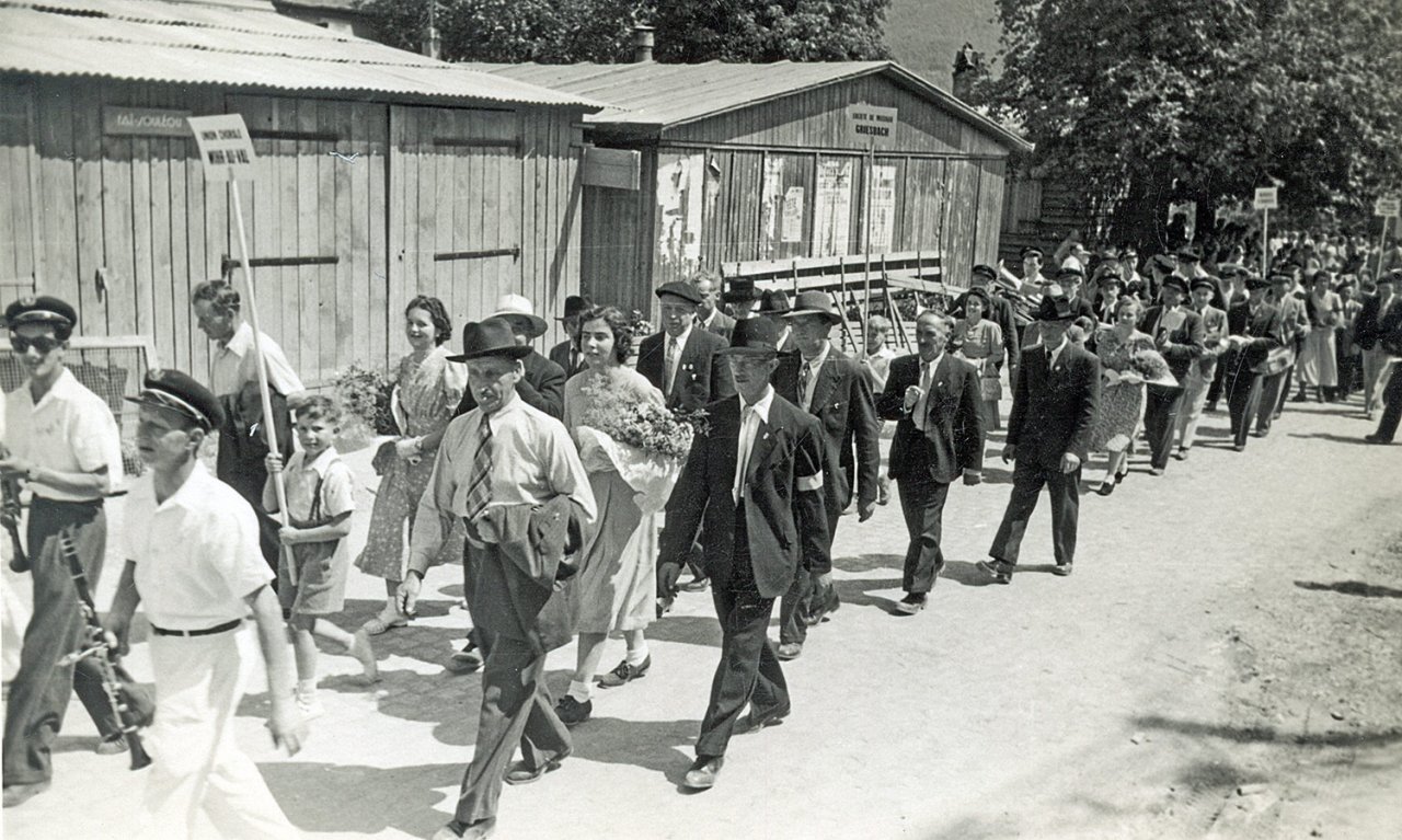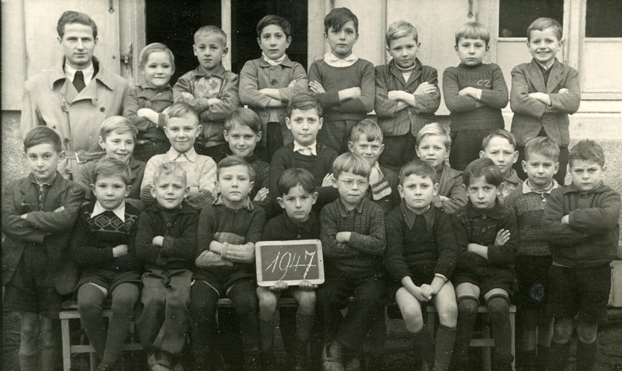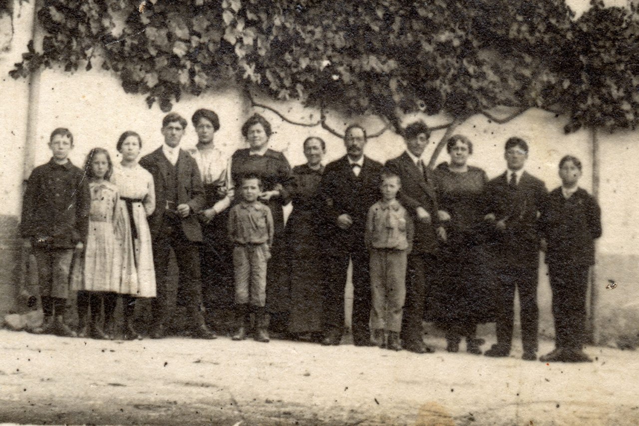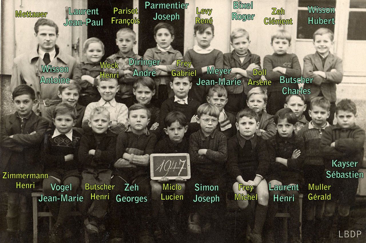 91 - Les maçons au travail : à gauche, en bas et adossé contre la poutre, Baldenberger Joseph