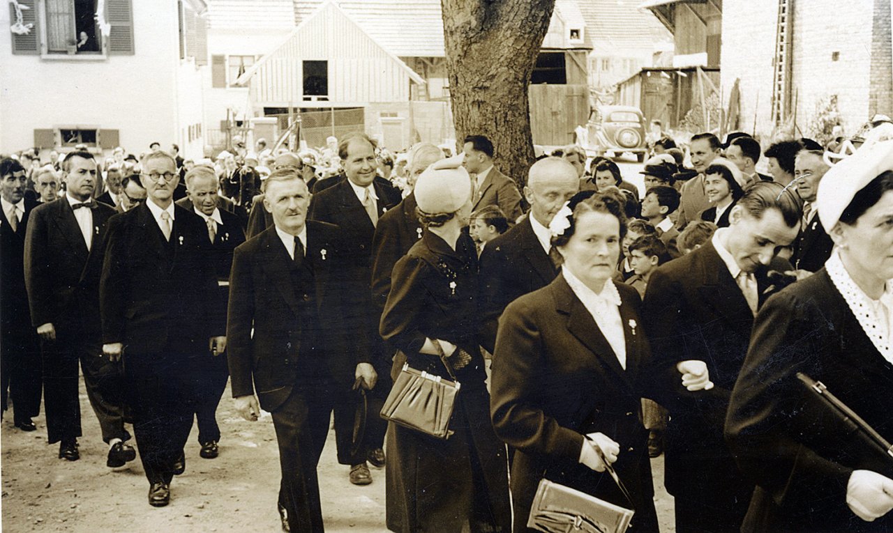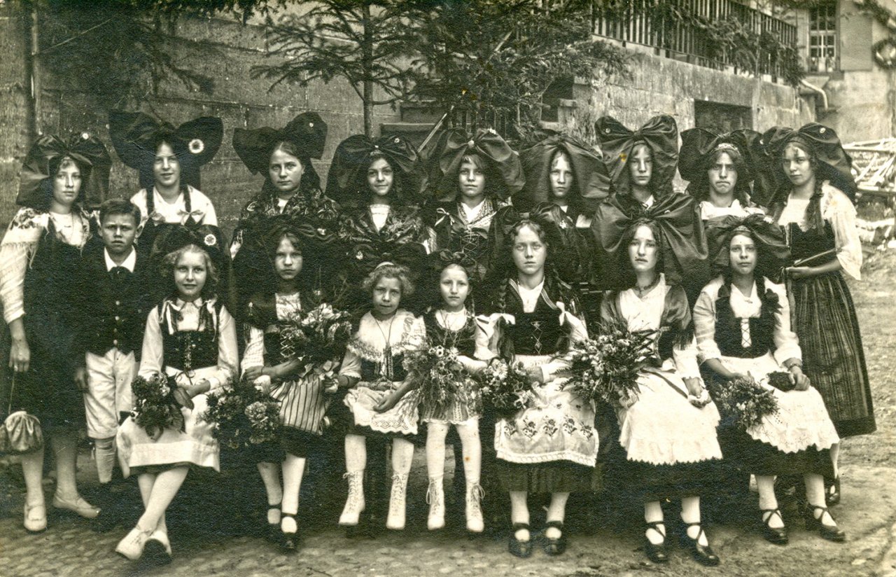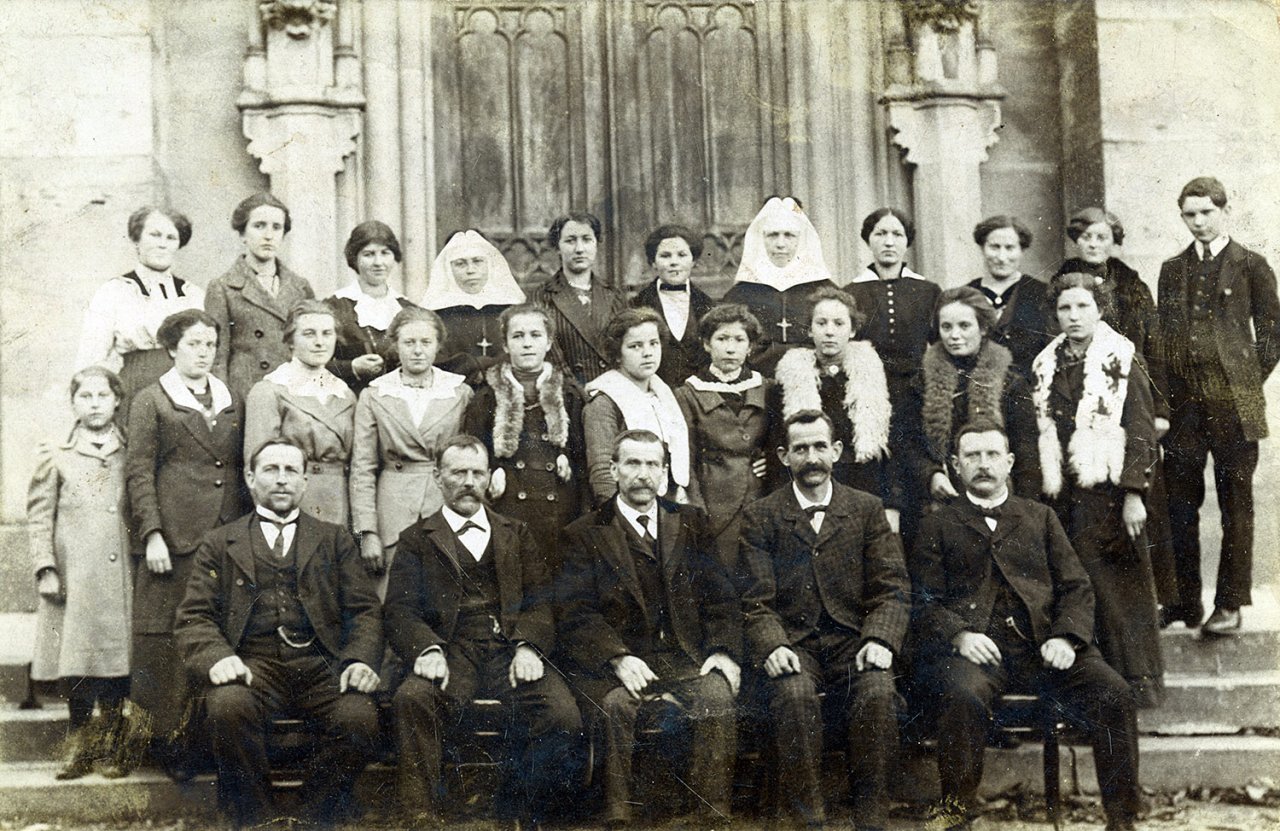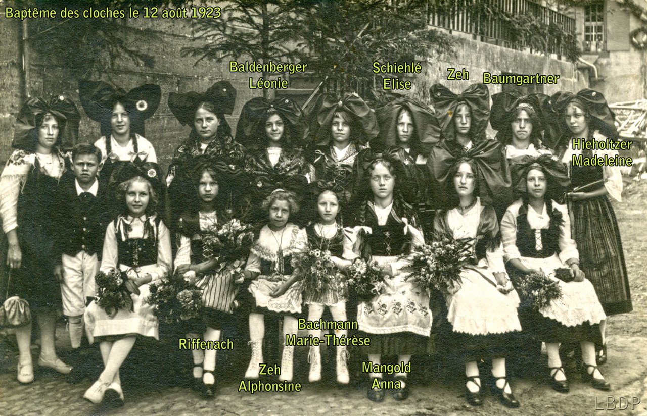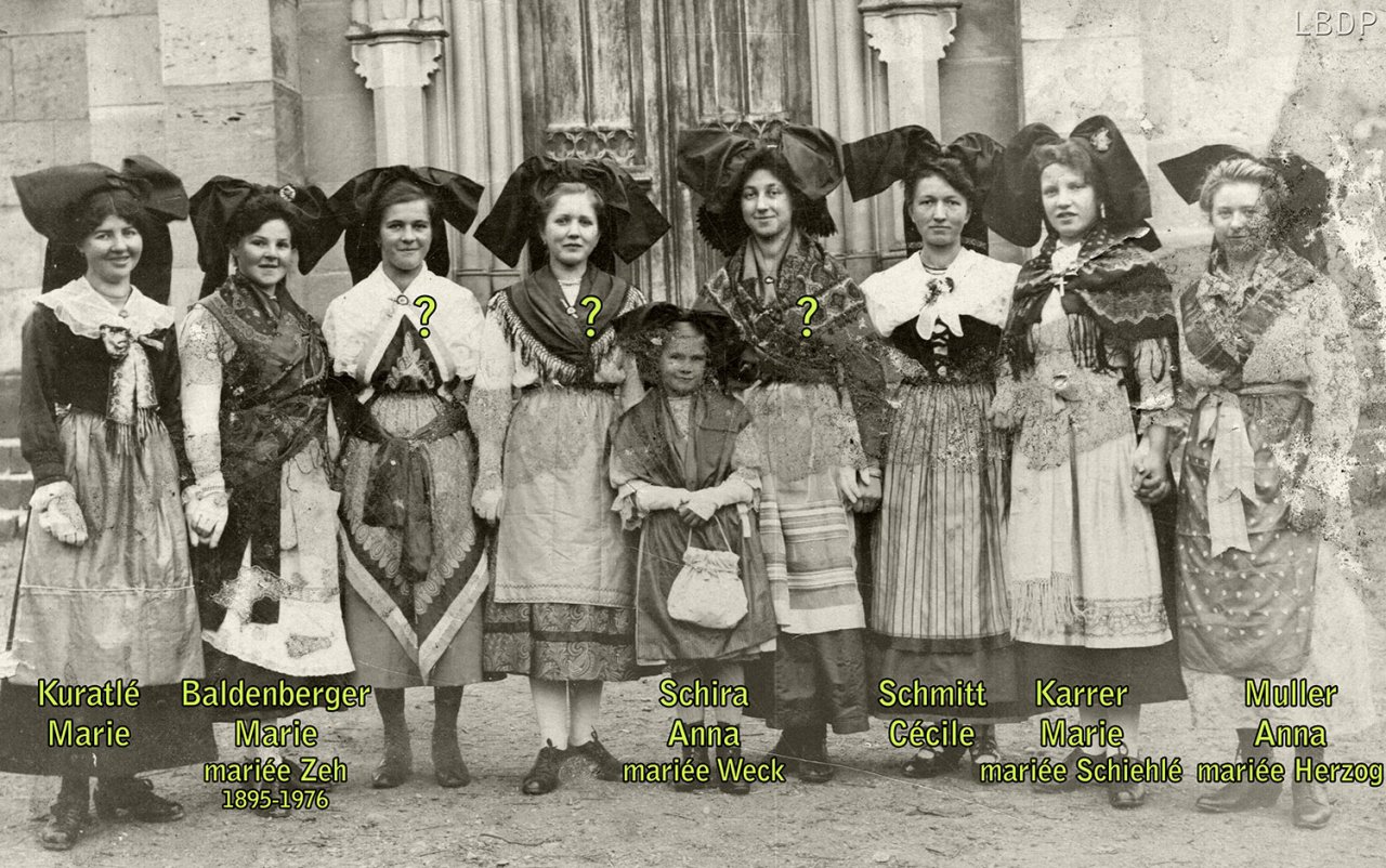 84 - Les alsaciennes devant l'église de Wihr vers 1920