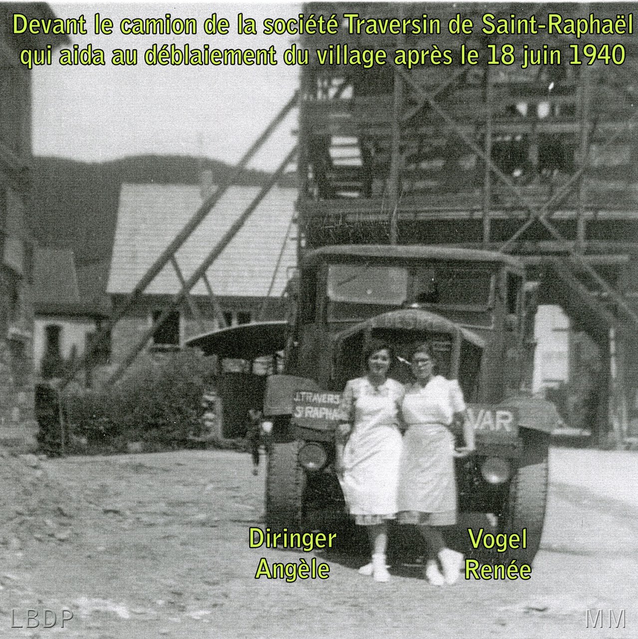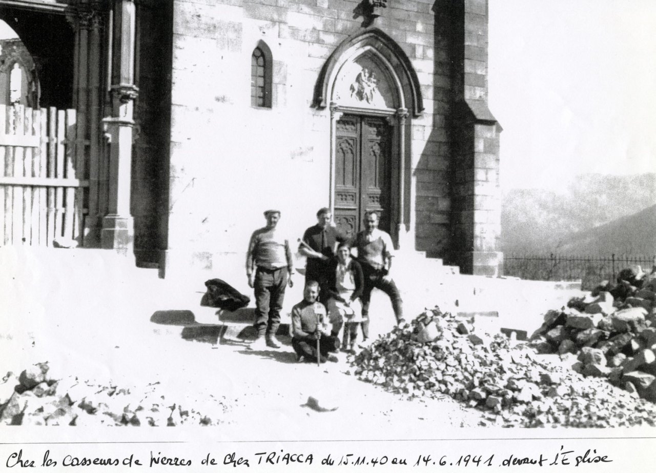 123 - Devant la tour au moment de la reconstruction du village
