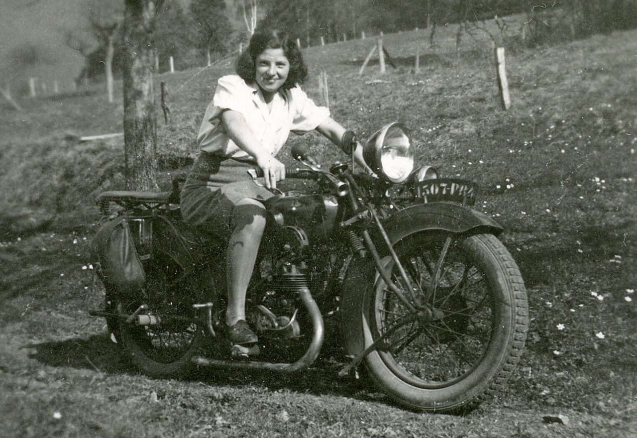 109 - Baldenberger Marguerite chevauchant sa moto