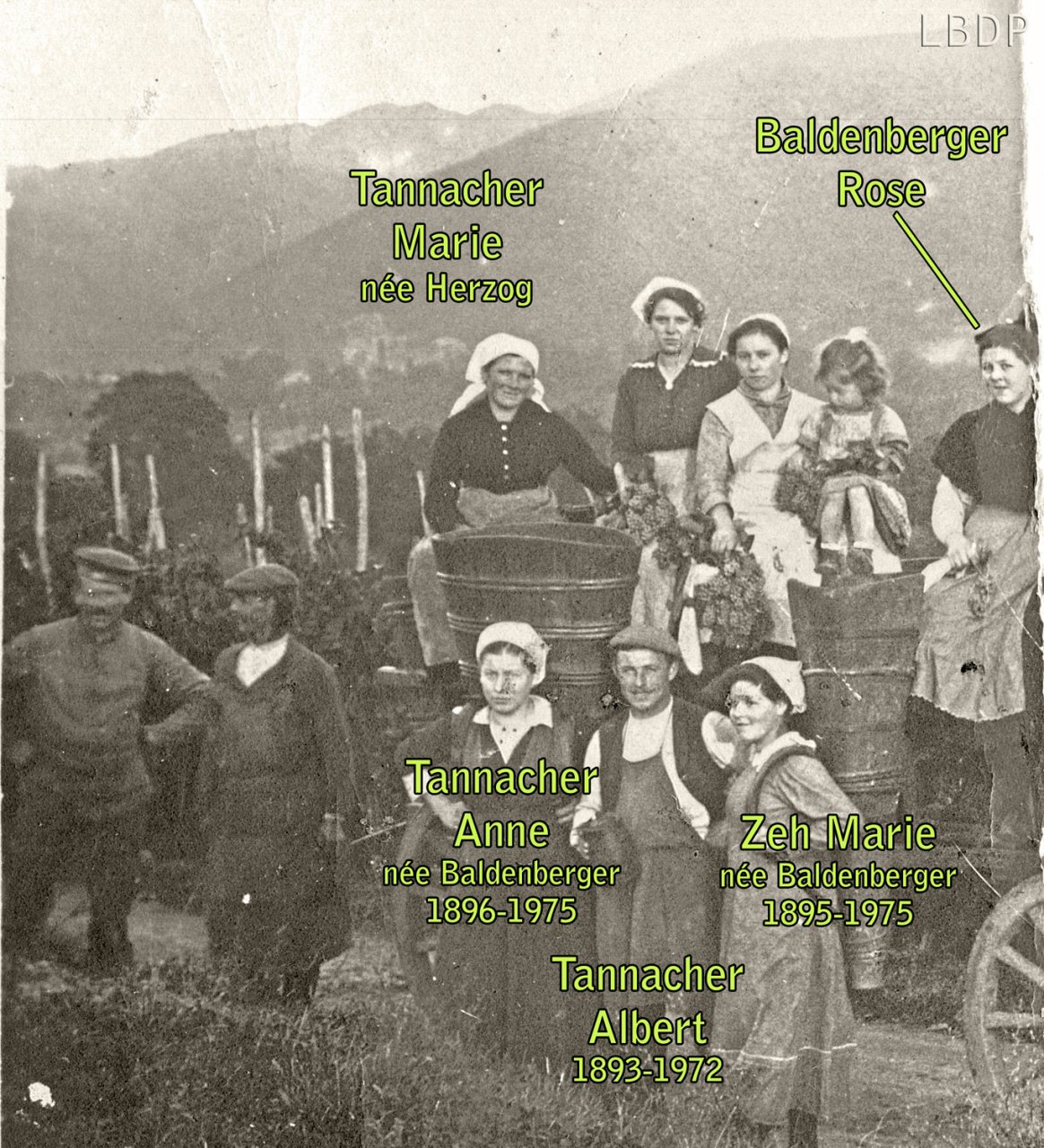233 - Les vendanges vers 1915 ; la petite fille en tablier blanc est Baldenberger Léonie née en 1907