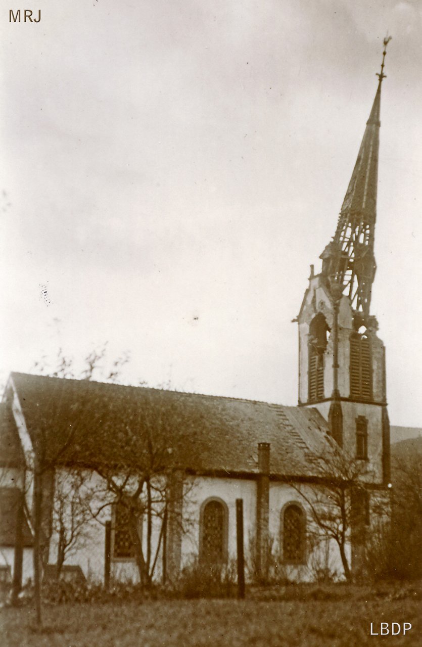53 - L'église de Gunsbach touchée par un obus en 1917