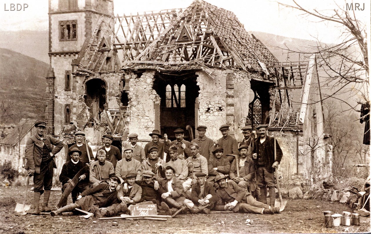 45 - L'équipe de déblaiement de l'église de Stosswihr détruite par l'offensive allemande en 1915