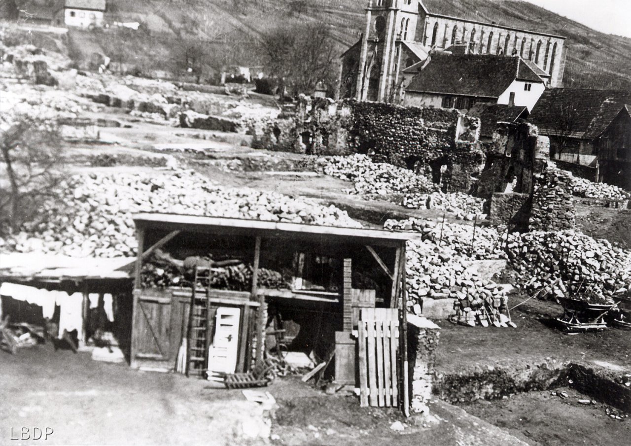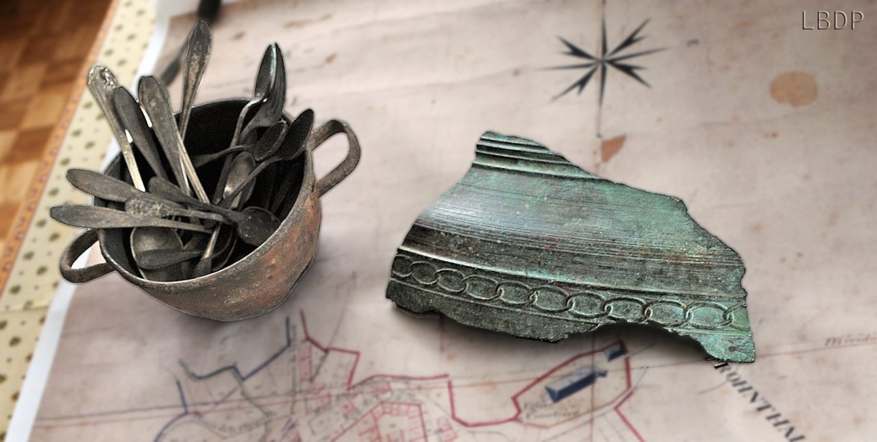 Objets retrouvés dans les ruines, de même q'un morceau d'une cloche.