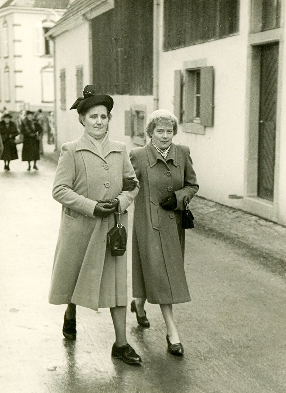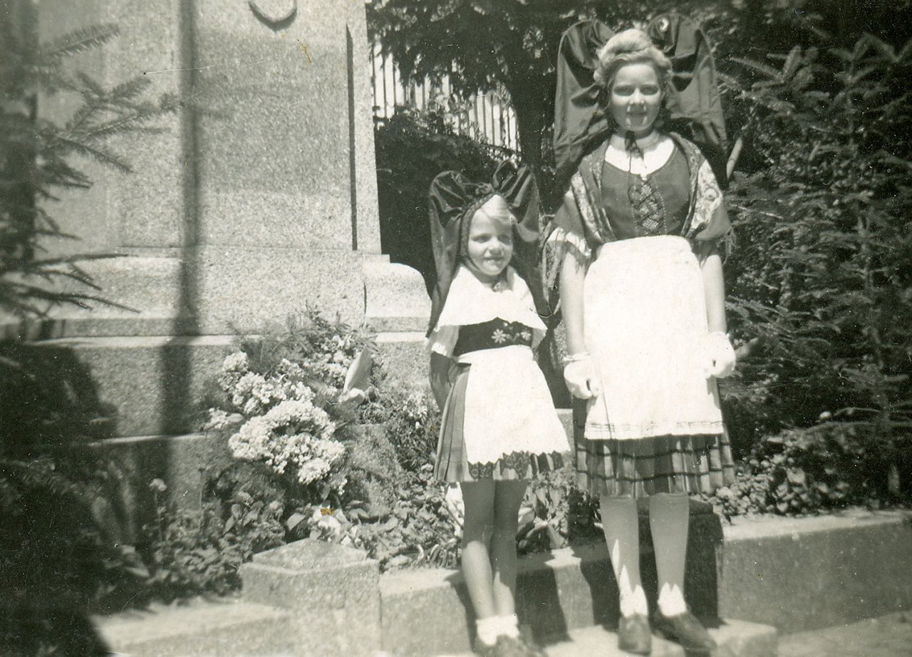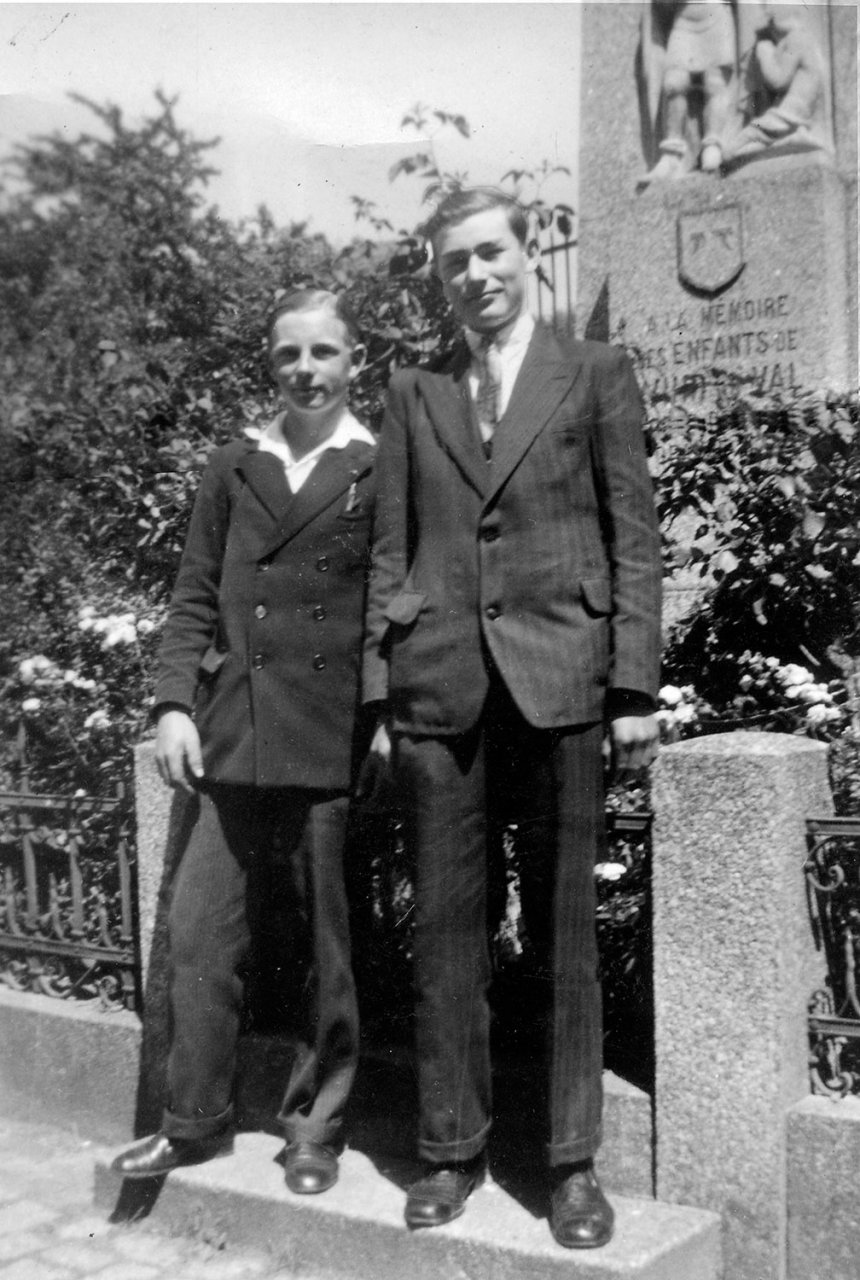 20 - En 1945, Simone et Irma Wisson devant le monument aux morts